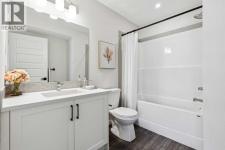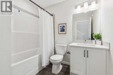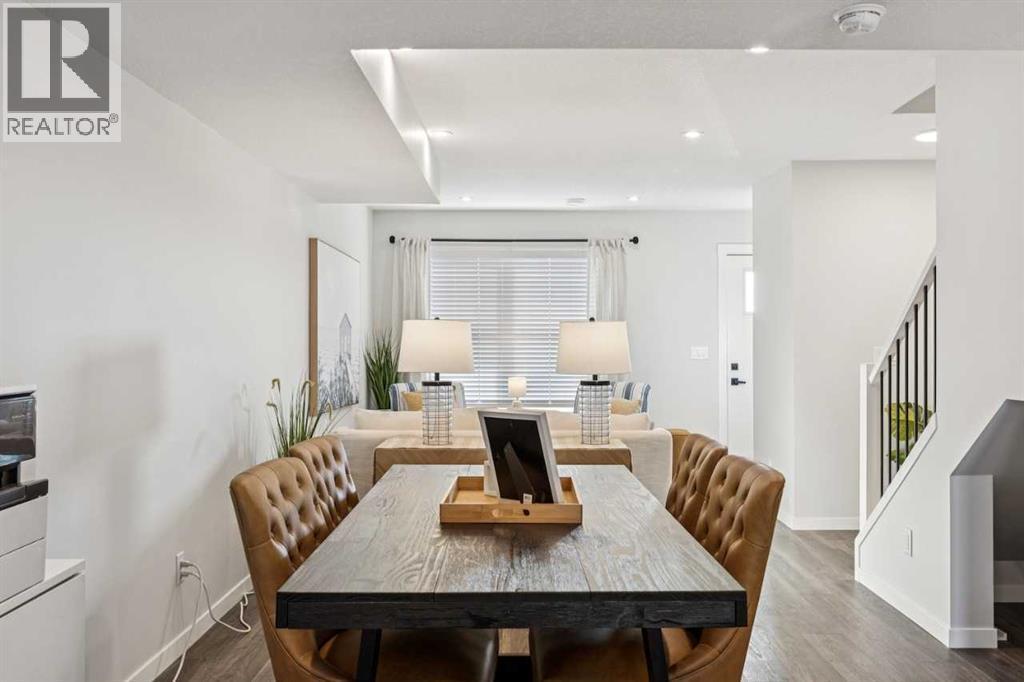 Welcome to Ambrosia, a beautifully designed 2-bedroom, 2.5-bath, two-storey stacked townhome in the scenic community of Crimson Ridge. Take in stunning views of the Bow Valley River, Downtown Calgary, and Canada Olympic Park, with a golf course just steps from your door. The open-concept main floor is perfect for entertaining, featuring a spacious kitchen island and luxury vinyl plank flooring throughout the main level and bathrooms. Upstairs offers two generous bedrooms designed for comfort and privacy, including a primary bedroom with walk-in closet and private ensuite, along with the convenience of upper-floor laundry. Built for superior energy efficiency with triple-pane windows and enhanced insulation, this home provides year-round comfort and reduced energy costs. Thoughtfully crafted for modern living. Photos are representative. (id:6769)