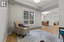 Come check out the open houses this weekend! Saturday February 7: 2:00-4:00pm & Sunday Feb 8: 12-2:00pm. Enjoy maintenance-free living in this spacious one-bedroom condo in the sought-after 55+ Maple building, ideally located in Calgary’s vibrant University District. Built by Truman Homes, Maple offers a secure, social community with luxury finishes, perfect for those ready to simplify life without sacrificing lifestyle.Unit 107 is a convenient main-floor condo with direct access to the covered patio and walking paths; ideal for easy comings and goings or running a quick errand. This 728 sq ft home features an open-concept floorplan with 9-foot ceilings, engineered hardwood flooring, and large triple pane picturesque windows. The modern kitchen includes quartz countertops, stylish cabinetry, a designer backsplash, and stainless steel appliances. The large island is perfect for casual meals or prepping a beautiful dinner at home. The dining area is spacious and also great for hosting family visits or playing cards with the grandchildren. The kitchen and dining area open to the living room, creating a comfortable space to relax at the end of the day. The generously sized bedroom includes a walk-through closet and a spacious 4-piece ensuite. A second full bathroom adds extra convenience for any guests. This unit also includes in-suite laundry and your own titled, heated underground parking stall.The Maple building includes a heated underground parkade, plenty of visitor parking, elevators, and thoughtful “aging in place” features such as wide hallways, accessible entrances, and automated doors. Residents will also enjoy a beautifully landscaped courtyard with inviting seating areas.Living in the University District makes everyday life incredibly convenient. From groceries and banking to coffee dates and evening movies, everything is close by. Save-On-Foods, Staples, Shoppers Drug Mart, Cineplex, COBS Bread, Monogram Coffee, Market Mall, and a variety of cafés, resta urants, and shops along Main Street are all within easy walking distance. With more amenities opening all the time, the University District continues to stand out as one of Calgary’s most vibrant and walkable communities.Next door is Cambridge Manor, a neighbouring residence offering independent and supportive living services. Maple residents are able to access select lifestyle and recreation amenities at Cambridge, including a bistro café, fitness centre, and a variety of fitness classes. A hair salon is also available, along with organized social activities such as coffee club, card games, crib club, drum circles, concerts, movies and documentaries, and special holiday meals.Whether you’re looking for a lock-and-leave lifestyle or a welcoming community to enjoy year-round, Unit 107 at Maple is an outstanding opportunity in one of Calgary’s best urban neighbourhoods. (id:6769)