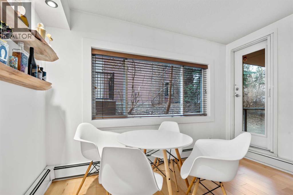 Fantastic Sunnyside Condo in an amazing location – backing on McHugh Bluffs and Sunnyside pathway system, with walking trails and parks, and downtown, at your doorstep. Experience main floor living with this immaculate, move-in ready 2 bedroom condo offering you everything you could need for those looking for the urban vibe while still being surrounded by trees and greenery. Enter through the secure building entrance, down a short hallway, and enter into the generous entry way of this condo. The warmth of the hardwood flooring blends beautifully with the modern décor. Boasting an open concept, bright living room that can accommodate a multitude of sofa configurations, two glass-door cabinets are included that can flank your TV, a cozy dining nook, lovely kitchen with stylish grey cabinetry, tile backsplash, granite countertops, and stainless steel appliances. You will enjoy the kitchen for its efficiency and the full size pantry for extra convenience and storage. The large 4 piece bathroom has tiled walls, a large soaker tub and equally large tiled shower, and a shelved storage area for towels, supplies, etc. The large primary bedroom has a very spacious walk-in closet with built-ins, shelves and drawers, and a second deep closet for added storage – of which there is no shortage of in this unit. The second bedroom is an ideal flex room:: keep it as a bedroom, use it as an office, convert it to a home gym, whatever your heart desires. The in-suite laundry includes a stacked washer and dryer so no leaving home to get caught up on laundry after your morning run. It has to be stated that this home is perfect for the first-time home buyer, someone wishing to downsize, the downtowner, or an investor – lots of options here. Discover everything this home has to offer, with walking distance to grocery stores, cafes, minutes to U of C, SAIT, Foothills and Children's hospital. Walk to Prince’s Island Park to enjoy the summer festivities, discover Sunnyside and K ensington community offerings, knowing that transit is minutes away. Check out the interactive iGuide for a virtual walkthrough of this property – you won’t be disappointed. (id:6769)