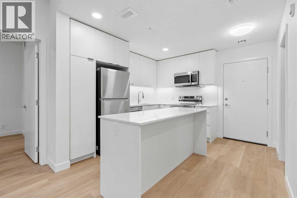 BRAND NEW | 2 BED / 2 BATH / 710 SQ FT | MODERN FINISHES | LOW CONDO FEES | TITLED PARKING – Welcome to East Hills by Minto Communities, an award-winning Canadian builder with over 70 years of experience. This condo complex is located in the growing community of Belvedere, just steps from East Hills Shopping Centre. Designed to foster a true sense of community, East Hills features pedestrian pathways, nearby greenspace, and a walkable, neighbour-friendly layout. Enjoy unbeatable convenience with Costco, Walmart, banks, restaurants, and everyday essentials right across the street, along with quick access to major roadways and public transit for an easy commute downtown or around the city.This brand-new 2 bedroom, 2 bathroom condo offers a smart and functional layout with 772 sq ft of well-designed living space and modern finishes throughout. The kitchen is located at the front of the home and features a large island, stainless steel appliances, and ample cabinetry for storage. The open-concept design flows seamlessly into the living area at the back of the home, where you’ll find access to the balcony—ideal for relaxing, entertaining, or enjoying summer evenings.The thoughtfully designed split-bedroom layout provides added privacy, with bedrooms located on either side of the home. The primary bedroom is situated to the right of the living room and includes a walk-in closet and a 3-piece ensuite bathroom. On the opposite side, you’ll find the second bedroom, an additional full bathroom, and a closet, making this layout ideal for roommates, guests, or a home office setup. At the very front of the home is a dedicated storage room with in-suite washer and dryer for added convenience.Additional highlights include titled parking, a pet-friendly building (with restrictions), and access to an on-site fitness centre, adding comfort and lifestyle appeal to this low-maintenance home. With modern design, low condo fees, and an exceptional location, this is a fantastic opportu nity for first-time buyers, investors, or those looking to downsize in one of southeast Calgary’s most convenient communities. Contact Minto’s sales staff and book your visit today! (id:6769)