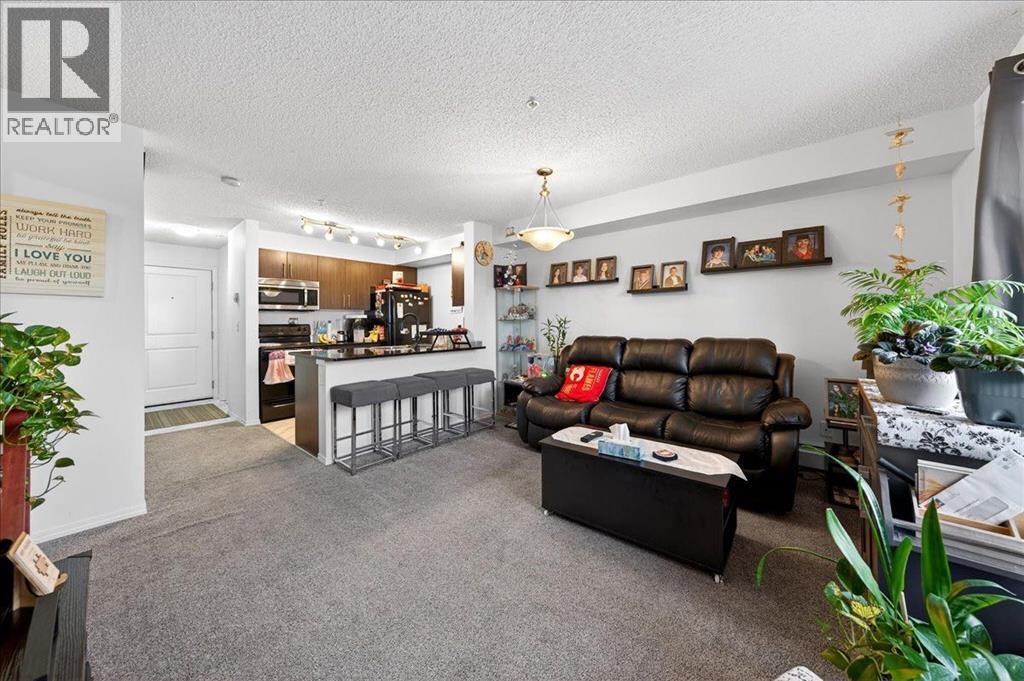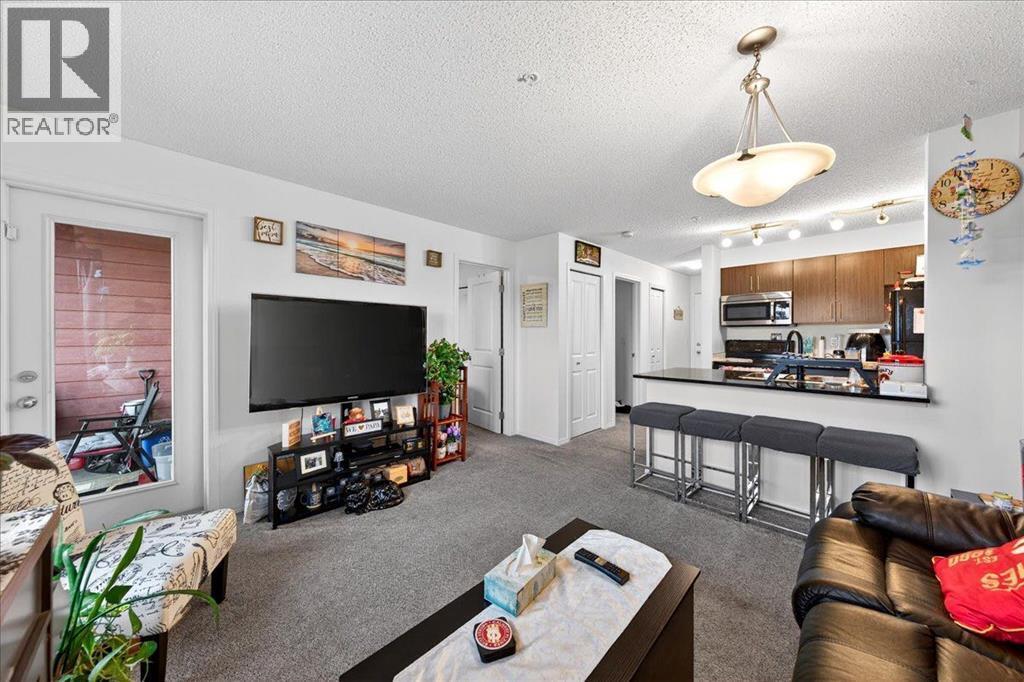 Welcome to this beautiful third-floor condo offering a perfect blend of comfort, accessibility, and modern design. This 2-bedroom, 1-bathroom home features a bright, functional layout with a warm, contemporary feel that is truly move-in ready. Enjoy added convenience with the elevator located just steps from the unit, providing quick and easy access throughout the building.The open-concept design allows the kitchen to flow seamlessly into the dining and living areas—ideal for everyday living, entertaining, or working from home. Both bedrooms are generously sized and versatile, easily accommodating a home office, guest room, or shared living arrangement. The well-appointed 4-piece bathroom is clean, modern, and thoughtfully designed for everyday comfort.Step out onto the private balcony and enjoy beautiful third-floor views, the perfect spot for morning coffee or evening relaxation. A parking stall conveniently located directly in front of the unit adds year-round ease and security.Located in the desirable community of Legacy, residents enjoy close proximity to parks, walking paths, schools, shopping, restaurants, and everyday amenities, along with quick access to major roadways for an easy commute. (id:6769)