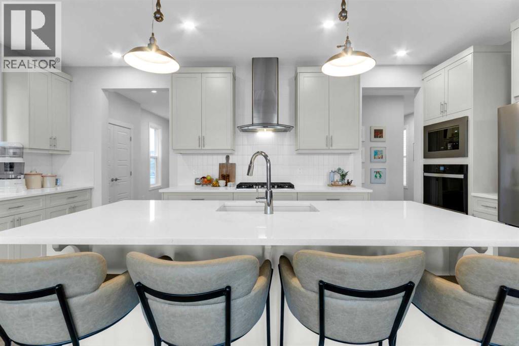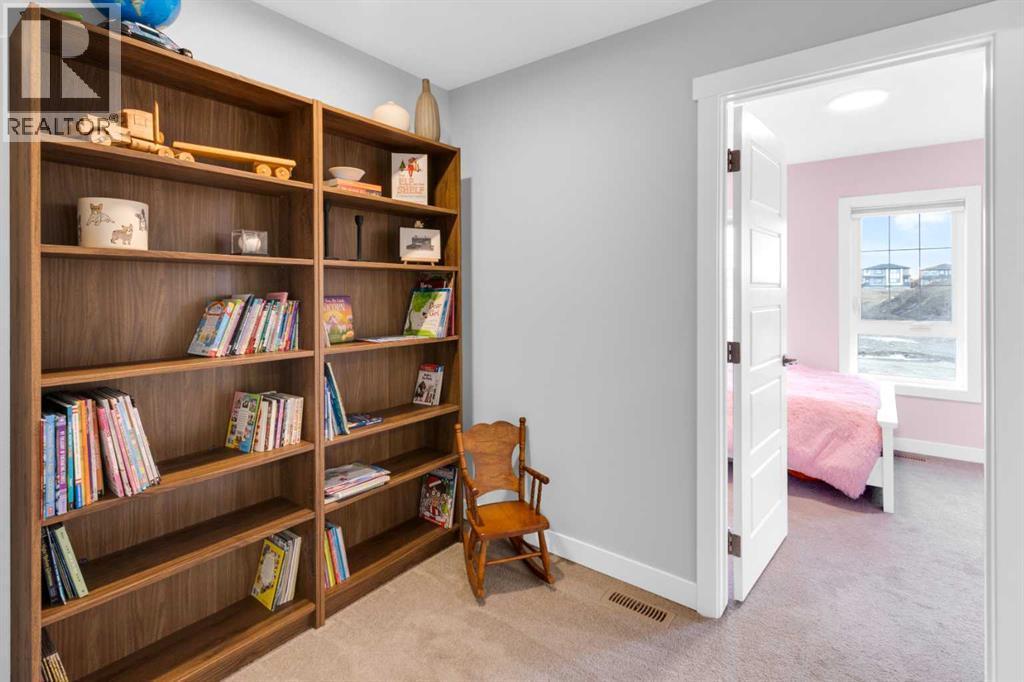 Located in the prestigious community of Rivercrest, this beautifully designed home offers nearly 3,500 sqft. of finished living space, thoughtfully crafted for both comfort and elevated everyday living. Flooded with natural light and positioned to capture stunning views of downtown Cochrane and mountain views to the west. This home features 3 spacious bedrooms on the upper floor plus a main-floor flex room, ideal as a private home office or 4th bedroom with the added versatility of a Murphy bed, along with a 1-bedroom suite on the lower level. The main level welcomes you with 9 ft ceilings, a spacious foyer and a seamless open-concept layout anchored by expansive windows and a large sliding patio door. The kitchen is both stylish and functional, featuring an expansive 8’ island, ample counter space, and built-in appliances, perfect for entertaining and everyday living. The living and dining areas are warmed by a cozy fireplace, creating an inviting atmosphere for gatherings and quiet evenings alike. The fully developed lower-level one-bedroom walk-out suite features 9 ft ceilings, a kitchenette, large windows, a bright open feel, beautiful ensuite bathroom, ample storage and a separate entrance, offering exceptional flexibility for extended family, guests, or as extra rental income. Upstairs, a centrally located bonus room provides the ideal space for family movie nights or a children’s play area. The primary retreat offers a serene escape, complete with a spa-inspired ensuite featuring double sinks, a tiled shower, and a soaker tub. For added convenience, the laundry room connects directly to the primary walk-in closet. Two additional bedrooms are thoughtfully positioned alongside a 5-piece bathroom with a separate sink area and a charming reading nook. Step outside to enjoy the evening sun and panoramic views of the town, surrounding hills, and mountain range from the oversized back deck. Set on a quiet street in a boutique community known for its scenic s urroundings and future school site, Rivercrest offers a strong sense of neighbourhood and exceptional access to downtown Cochrane, Spray Lakes Recreation Centre, and an easy commute to Calgary. (id:6769)