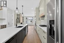 READY FOR IMMEDIATE OCCUPANCY! Welcome to the epitome of urban elegance, a stunning semi detached inner~city infill perfectly situated in one of Calgary’s most desirable communities, just minutes from downtown. This exceptional home includes a LEGAL BASEMENT SUITE, offering a fantastic opportunity for additional income or a comfortable private space for guests. Nestled in a quiet, tree lined neighbourhood yet only moments from the vibrant energy of downtown, this residence truly offers the best of both worlds, tranquility and convenience. Step inside and discover a meticulously designed, modern luxury home that blends style and functionality. The open concept main floor is ideal for entertaining, featuring a chef inspired kitchen with a massive quartz island, premium finishes, and ample workspace to spark your culinary creativity. The inviting living area showcases a stunning fireplace surrounded by custom built-ins, while the rear mudroom and convenient two piece powder room add everyday practicality. Step outside to your west facing backyard sanctuary, perfect for relaxing or entertaining long into Calgary’s summer evenings. Upstairs, the spacious bedrooms are designed for peace and comfort, each with large windows that fill the rooms with natural light. The primary suite impresses with a vaulted ceiling, a generous walk~in closet (offering more space to store your treasures than you’ll find in most infill homes) and an elegant and well appointed ensuite. An upper laundry room with sink also presents on this floor of the home. The lower level is masterfully finished and includes a full kitchen, a MASSIVE living area, a bedroom, and a bathroom, all enhanced by in~floor heating for ultimate comfort. Enjoy being just minutes from trendy boutiques, cafes, parks, and entertainment venues. Embrace the vibrant Rosscarrock lifestyle with this exceptional infill home ~ where luxury, location and lifestyle meet! (id:6769)