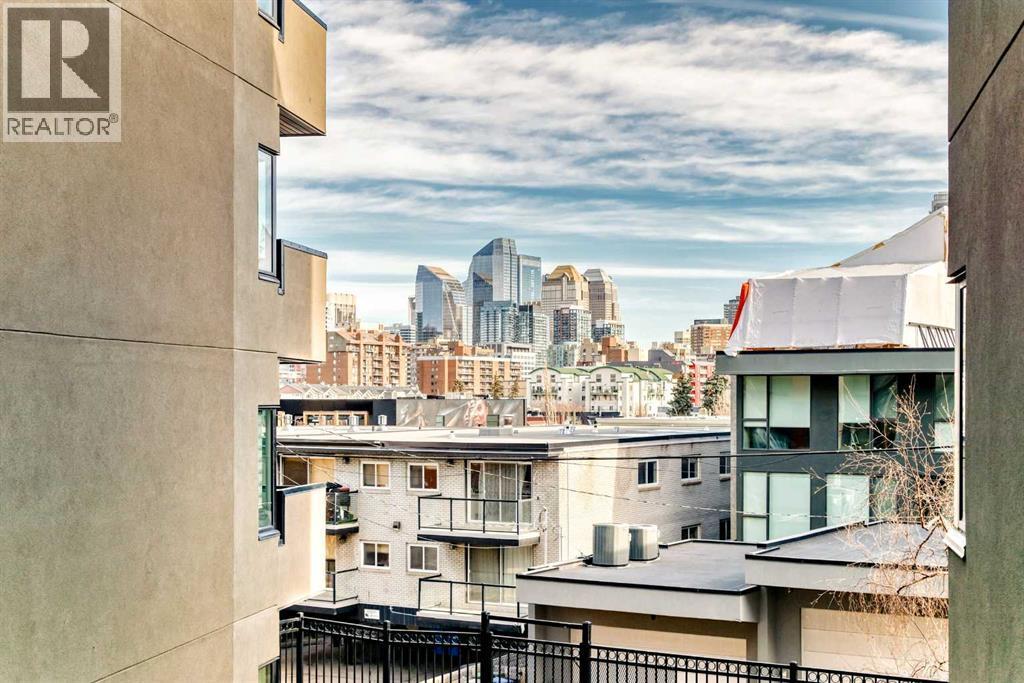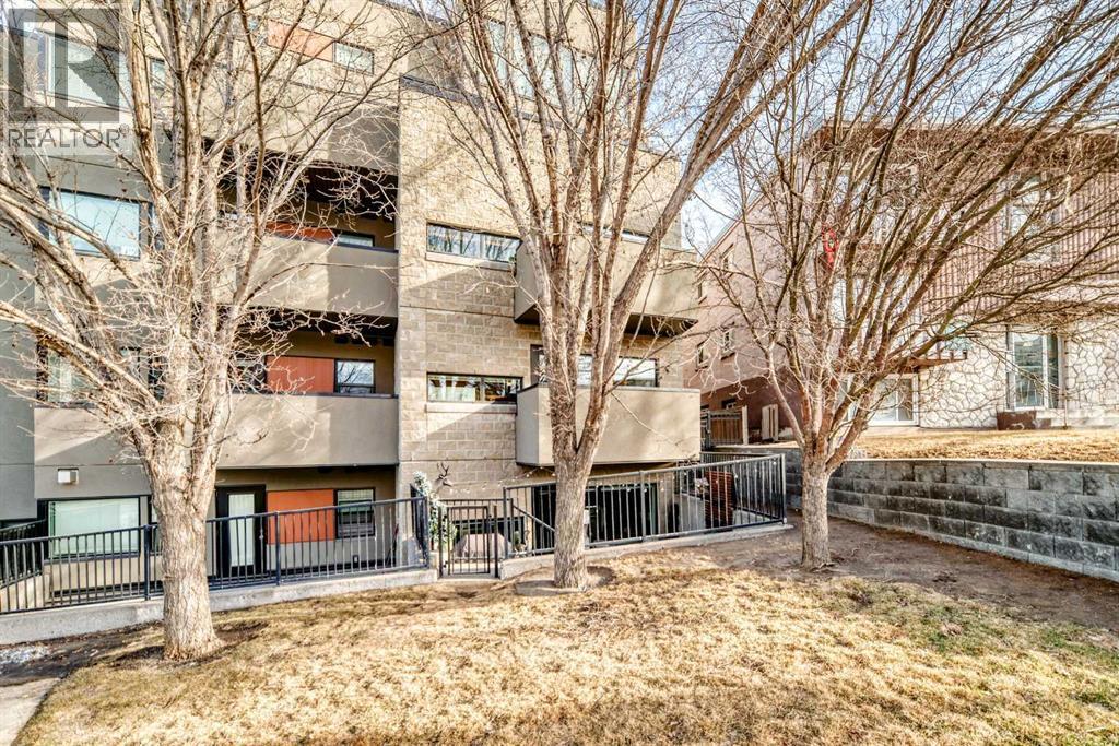 Truly a phenomenal, exceptionally walkable location for this 2 bedroom, 2 bathroom condo spread over 921 square ft with titled underground parking and a large storage locker. Enjoy the downtown lifestyle just steps to trendy 17th Ave with shops and an array of restaurants and pubs. Walk or bike downtown, along the Bow River, and the many tranquil river pathways. Plus, just a short walk to the heart of Marda Loop for additional restaurant and shopping options. Welcome home to this stylish sanctuary offering a bright and spacious layout. Chef up some culinary wonders in the large kitchen with stainless steel appliances, gas stove, and large island. Relax in your living room in front of the contemporary concrete fireplace that is bathed in sunshine from the oversized windows. The adjacent dining room (or flex space) has plenty of room for meals or the additional space you need. At the end of the day retreat to your primary bedroom with a built-in desk nook, walk-in closet, private ensuite with soaker tub and separate shower. Laundry is also conveniently located in the primary bedroom. The second bedroom is right next to the second full bathroom. This well-maintained condo has a great combination of space and location you can’t pass up. You will also enjoy the secure, gated building. This is simply a wonderful move-in ready home in an unbeatable inner-city location! (id:6769)