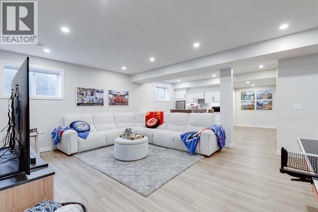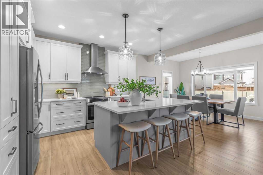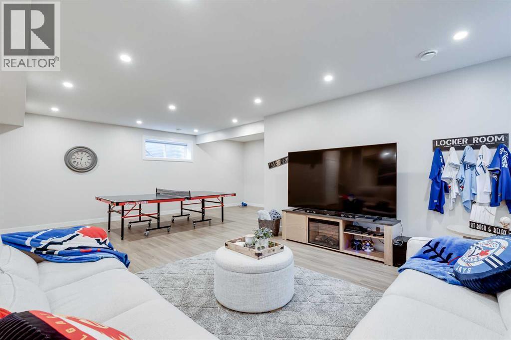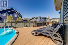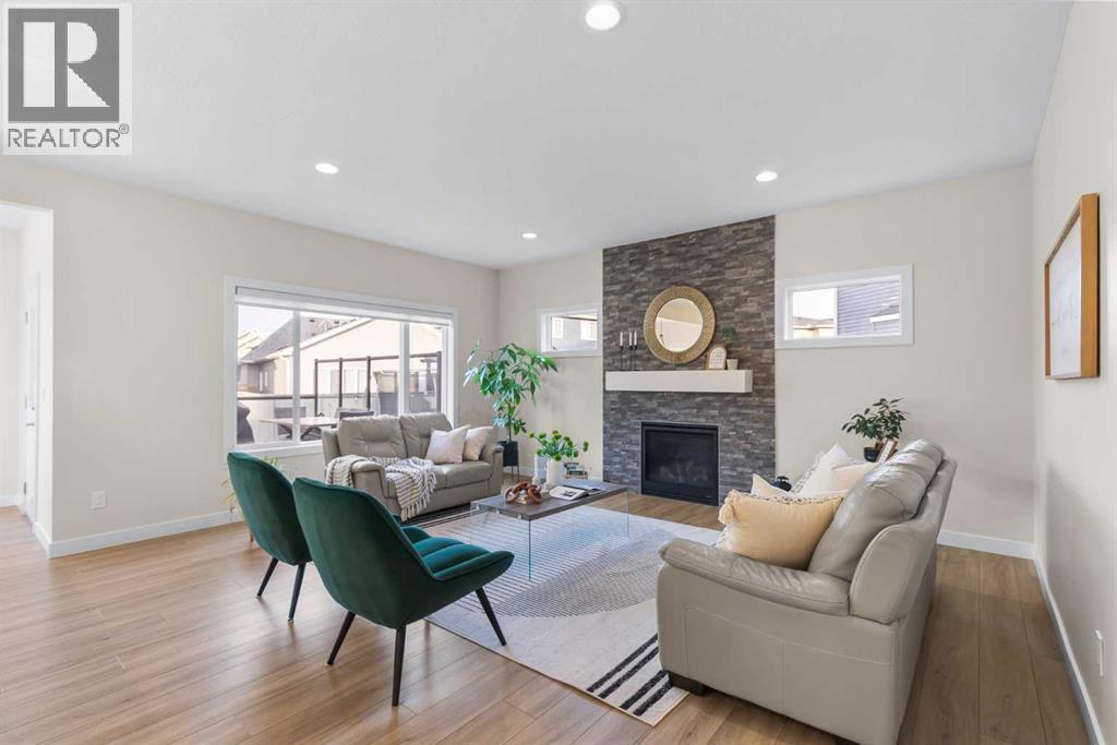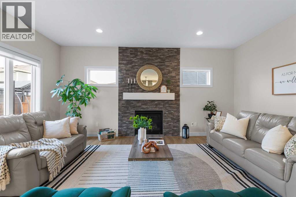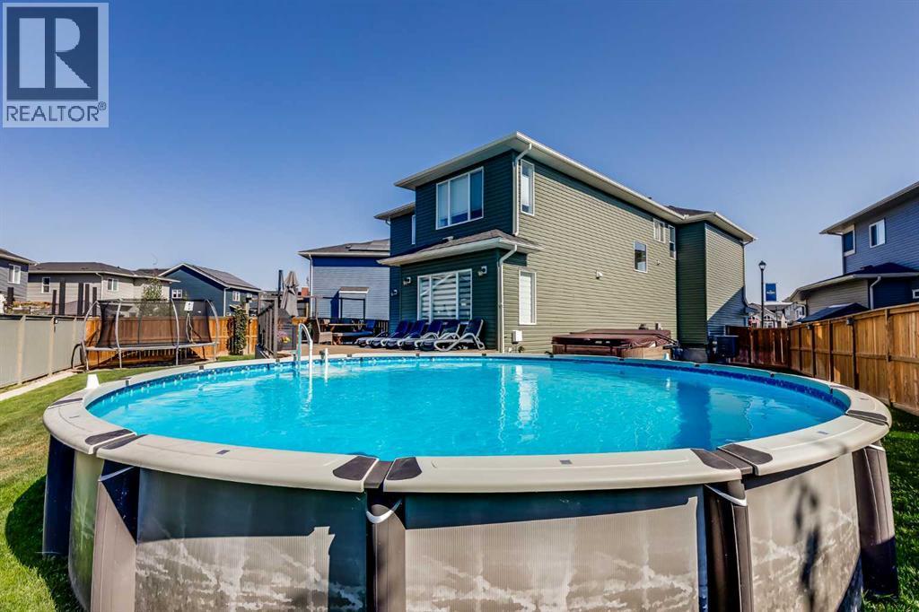 An exceptional fully finished family home offering over 2,600 sq ft above grade plus a beautifully developed basement — ideally positioned on a quiet cul-de-sac on a rare oversized south-facing pie lot.Designed for elevated family living and effortless entertaining, this 4-bedroom, 4-bathroom residence showcases impressive scale, thoughtful design, and refined comfort across every level. A grand entry and oversized mudroom provide a warm and functional welcome, while the front den offers a versatile space for a private office, study, or creative studio. Elegant vinyl plank flooring leads you into the heart of the home — a chef-inspired kitchen with abundant prep space, extensive cabinetry, and a seamless open-concept flow into the expansive dining area and striking living room anchored by a feature fireplace — an ideal backdrop for hosting and everyday luxury.The upper level is expertly planned for modern family life, featuring four generous bedrooms, a full laundry room, and a spacious bonus room perfect for a media lounge or relaxation space. The primary suite is a true retreat — bright and serene, overlooking the backyard — complete with a spa-inspired 5-piece ensuite and a large walk-in closet.The finished basement extends the home’s entertainment value with a sprawling recreation and family room, stylish wet bar, and full bathroom — perfectly suited for guests, extended family, or unforgettable hosting.Outdoors, the property transforms into a private resort-style setting. The 7,200+ sq ft south-facing pie-shaped lot features a massive composite deck, heated above-ground pool, in-ground sprinkler system, permanent exterior lighting, and a storage shed — with abundant remaining yard space for recreation and gatherings. Comfort is further enhanced with central air conditioning.Additional highlights include a double attached garage and an enviable location just steps from parks and pathways that meander through the Canals in Bayside. One of the communitie s premier parks is just around the corner. This home offers quick access to schools and nearby shopping and dining. A rare offering that combines luxury, scale, and lifestyle in one remarkable home. Book your private showing today! (id:6769)
