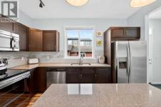Welcome to this beautiful NO-CONDO-FEE townhome in the highly sought-after lake community of Mahogany, offering year-round access to the beach, clubhouse, and an array of outdoor amenities. This immaculate home combines comfort, functionality, and style, with a thoughtfully designed floor plan that takes full advantage of the abundant natural light streaming through the large windows.The main floor boasts 9-foot ceilings and an inviting open-concept layout that seamlessly connects the living, dining, and kitchen areas—perfect for both relaxing and entertaining. The kitchen is well-appointed with granite countertops, stainless steel appliances, and ample cabinetry, complemented by a blend of laminate and tile flooring that adds both warmth and durability.Upstairs, you’ll find two spacious primary bedrooms, each offering a walk-in closet and private ensuite for ultimate convenience and privacy. One of the bedrooms also includes a versatile den area, ideal for a home office or cozy reading nook.The unfinished basement provides plenty of potential for future development—whether you envision a recreation room, home gym, or extra storage space. Outside, enjoy a low-maintenance yard, a welcoming front porch, and a private backyard complete with a cement patio and gas grill hookup, perfect for summer barbecues and relaxing evenings. A detached double garage offers secure parking and additional storage.Recent upgrades include brand-new carpet (2025), a new hot water tank (2025), and a newer oven (2023), making this home truly move-in ready.With its excellent layout, modern finishes, and access to one of Calgary’s most desirable lake communities, this Mahogany townhome is a perfect blend of lifestyle and value. (id:6769)