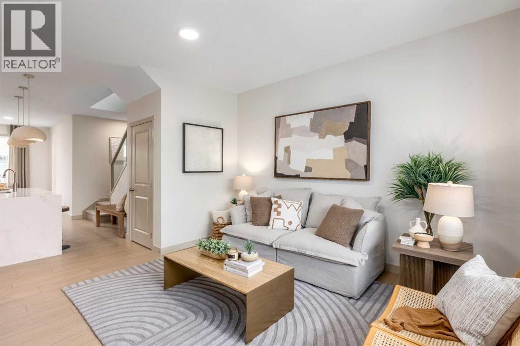 MOVE-IN READY, NO CONDO FEES, AND SITTING RIGHT WHERE FIRST-TIME BUYERS AND INVESTORS WANT TO BE—this Savanna townhome checks ALL the boxes that actually matter. Immediate possession means no waiting, no guessing, and no monthly fees quietly eating into your budget.The main floor is open, efficient, and refreshingly well thought out. The kitchen anchors the space with a BREAKFAST BAR ISLAND, QUARTZ COUNTERTOPS, UPGRADED CABINETRY, matte black hardware, a CHIMNEY-STYLE HOOD FAN, and a BUILT-IN MICROWAVE—clean lines, practical finishes, and nothing overdone. Durable LVP hard-surface flooring keeps daily life low-maintenance, while the layout flows easily from cooking to dining to relaxing without wasted space.Upstairs, three bedrooms—including a comfortable primary with walk-in closet—are paired with UPPER-FLOOR LAUNDRY and two full bathrooms finished with matching quartz, keeping the look cohesive and easy to live with. The neutral palette is intentional: easy to furnish, easy to rent, and unlikely to date itself anytime soon.Downstairs, the unfinished basement leaves room to grow, add value, or keep things simple. Out back, rear lane access and a DEDICATED PARKING PAD add everyday practicality—without the rules, boards, or monthly fees that often come with townhome living.Set in the heart of Savanna, with QUICK ACCESS TO TRANSIT, SCHOOLS, SHOPPING, AND EVERYDAY AMENITIES, this is the kind of property that works just as hard as you do. A smart entry point, a solid investment, and a home that’s ready when you are. • PLEASE NOTE: Photos are of a finished Showhome of the same model – fit and finish may differ on finished spec home. Interior selections and floorplans shown in photos. (id:6769)