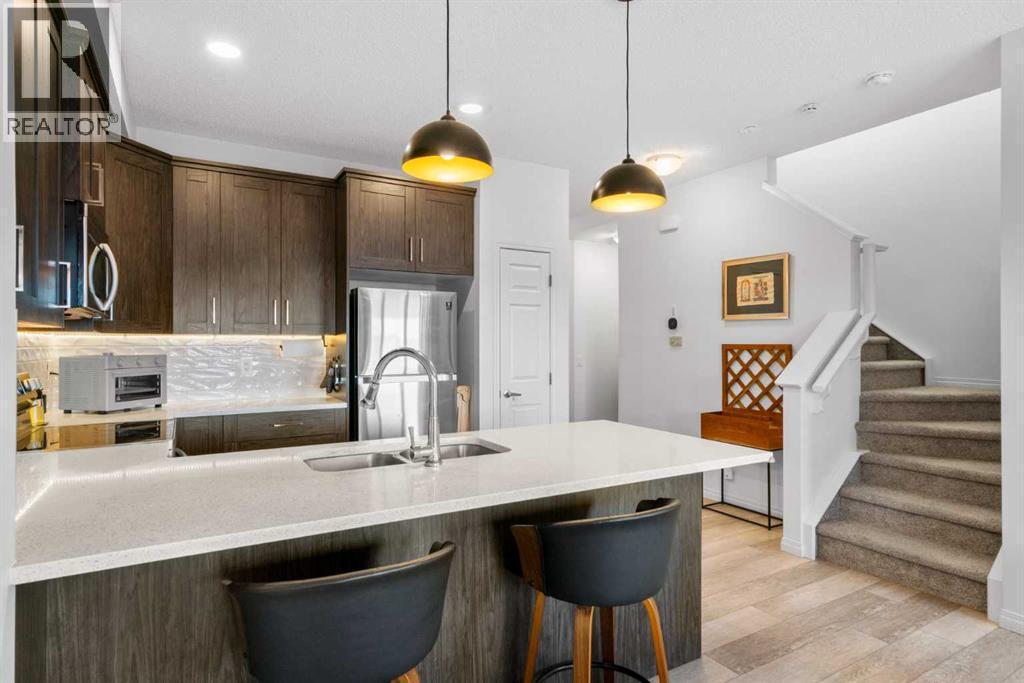 ***Home Sweet Home in Desirable Carrington***Welcome to this beautifully maintained 2-storey home, ideally located in a quiet and perfectly positioned pocket of Carrington — just steps to parks, pathways, shopping, transit, and convenient new access routes.Offering over 1,400 sq. ft. of thoughtfully designed living space, this fully developed home showcases a modern décor palette and numerous upgrades throughout. The award-winning open-concept layout features 9-foot ceilings on the main floor and beautiful vinyl flooring, creating a bright and inviting atmosphere.The upgraded kitchen is equipped with stainless steel appliances and flows seamlessly into the spacious living and dining areas — perfect for entertaining family and friends.Upstairs, you’ll find three generously sized bedrooms and 2.5 bathrooms, including a comfortable primary retreat. Central air conditioning (installed in 2024) keeps the home cool and comfortable during the summer months.The walkout basement is unspoiled and ready for your personal touch, offering excellent potential for additional living or entertainment space.Enjoy the oversized sunny backyard, outstanding curb appeal with a private covered front entry, rich stone accents, and maintenance-free metal and vinyl siding. The home also features a front-attached single garage and a huge concrete driveway accommodating 3–4 additional vehicles.Recent upgrades include Class 4 impact-resistant shingles (offering enhanced durability and potential insurance savings), new siding, and a 2024 A/C installation.Don’t miss this incredible opportunity — call your favorite REALTOR® today to book your private showing! (id:6769)