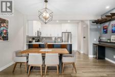 Welcome to this beautifully upgraded, move-in-ready townhome in the sought-after community of Crestmont, where modern comfort meets that “escape-to-the-mountains” lifestyle, right here in the city. Surrounded by tranquil pathways, sweeping mountain views, and easy access to nature, this home is ideal for anyone who wants a stylish space with a warm, welcoming feel. Step inside to a bright, open-concept main floor designed for everyday living and easy entertaining. The living room and dining area offer ample space to host, relax, and gather—flooded with natural light thanks to west-facing windows that create a warm, inviting feel throughout the afternoon and evening. Durable vinyl plank flooring flows through the space, complemented by contemporary fixtures and a crisp, elevated finish. The kitchen is a standout with full-height cabinetry, quartz countertops, and a generous breakfast bar—perfect for morning coffee, quick meals, or gathering with friends while you cook. Just off the kitchen and main living area, you’ll find a feature wall that truly sets the tone: a beautifully finished bar area with rich wood detailing that brings a “Whistler-inspired” vibe home—equal parts cozy, refined, and made for hosting. Upstairs, the layout continues to impress with two well-proportioned bedrooms and smart storage throughout. The spacious primary retreat features a large pass-through closet complete with custom built-ins and an upgraded ensuite with a sleek walk-in shower—clean lines, modern finishes, and a spa-like feel. The second bedroom and additional full bathroom offer flexibility for guests, kids, or a dedicated home office. Outside, enjoy the covered balcony with a BBQ gas line—ready for year-round grilling, morning sun, or a quiet evening unwind. You’ll also appreciate central air conditioning for summer comfort. The oversized double tandem garage provides impressive versatility, with space for two vehicles, bikes, seasonal gear, or even a future workshop setup, plus extra storage in the utility room and convenient foyer area for day-to-day organization. Crestmont is loved for its peaceful, nature-forward setting—pathways, off-leash areas, and that “weekend getaway” feeling—while still keeping you close to everything. You’re minutes to Winsport, Calgary Farmers’ Market West, great local shops and restaurants, and you’ll love the quick access to downtown Calgary or an easy escape west to the Rockies. This is the kind of home that checks the boxes for lifestyle, design, and practicality—without compromise. (id:6769)