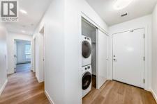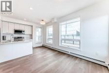 Location, location, location. Ideally situated directly across from East Hills Shopping Centre with Walmart, restaurants, and everyday amenities, and just minutes to Stoney Trail and 16th Avenue. Welcome to this brand-new condo complex in the vibrant and growing community of Belvedere. This corner two-bedroom, two-bathroom condo is a must-see. Vinyl plank flooring flows throughout, the main entry and offers a spacious closet with convenient access to the washer and dryer. Open-concept from the living room, dining area, and kitchen. The kitchen is beautifully finished with quartz countertops, custom cabinetry, and new upgraded stainless steel appliances. The master bedroom is generously sized and features a three-piece ensuite and ample closet space . The second bedroom is also spacious and has easy access the the additional four-piece bathroom which is perfect for guests and everyday use. Both bathrooms are finished with quartz countertops. There is a small office area for those of you that work from home. Could also be used as a flex room for excercise room or storage area. Step out from the kitchen onto an impressive 7.2 x 31 ft. wraparound deck facing north and west, complete with a gate for easy access and a quick walk to East Village. This pet-friendly building offers low condo fees, and the corner-unit design provides extra windows and natural light compared to other units. An excellent opportunity not to be missed. (id:6769)