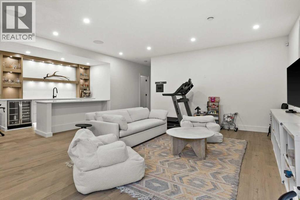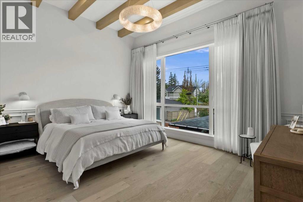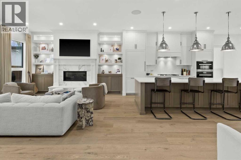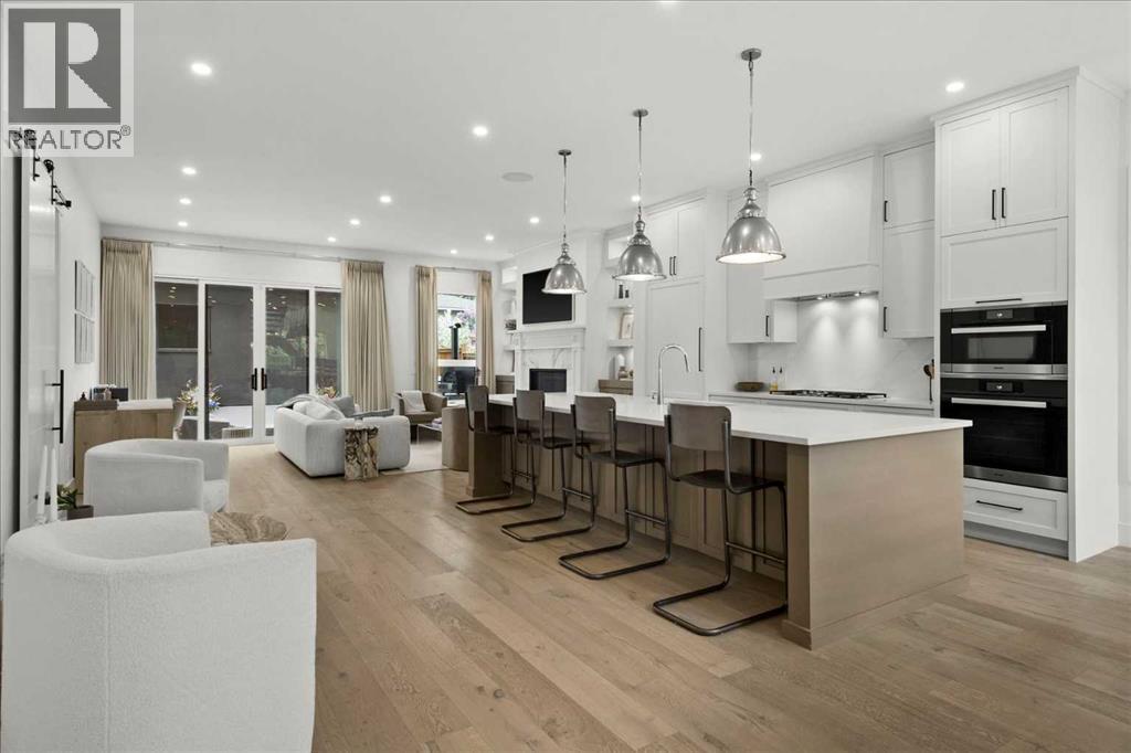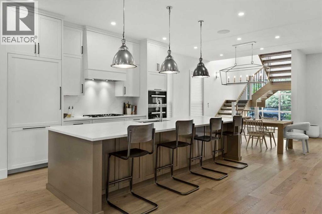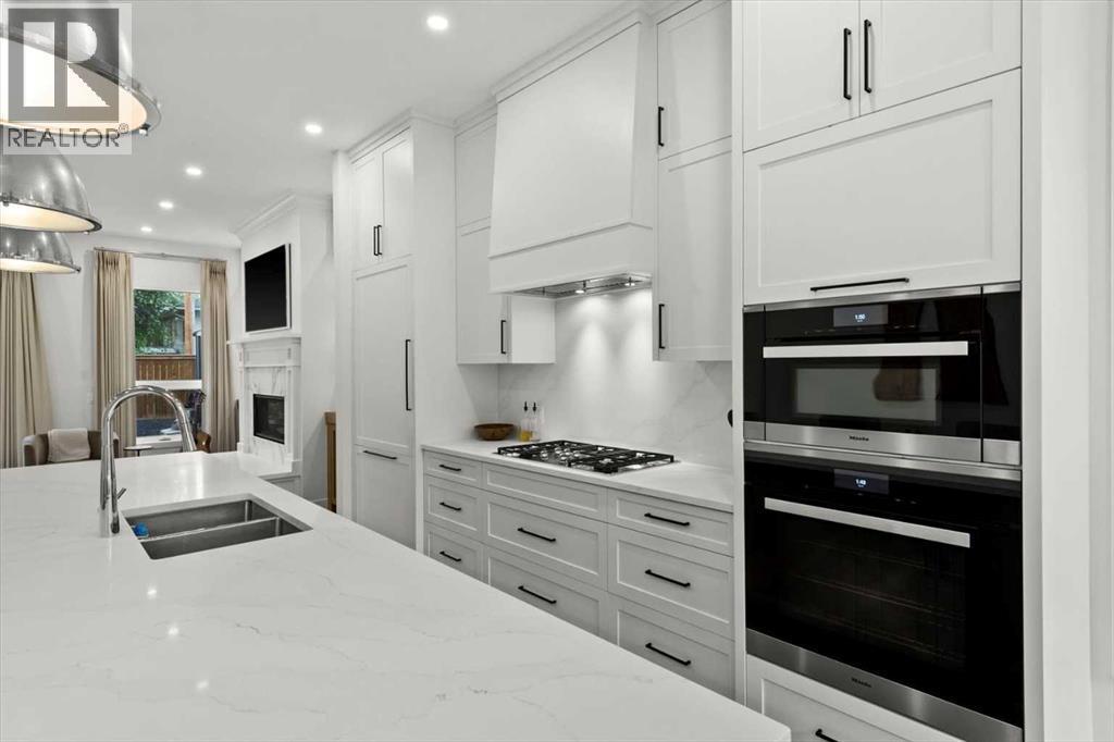 Welcome to this exceptional custom-built executive home offers over 3,700 sqft of beautifully curated living space in the heart of Altadore, one of Calgary’s most sought after inner city communities. Thoughtfully designed with elevated finishes and timeless appeal, this residence features 10 ft ceilings on both the main and upper levels, wide-plank engineered white oak hardwood flooring, and west facing backyard ideal for enjoying a summer evening. The gourmet kitchen is complete with a Miele appliance package including a 5-burner gas cooktop, double wall ovens, paneled refrigerator, quartz countertops, an expansive island with storage, and a custom walk-through pantry complete with pull-out drawers, coffee station, and extensive custom built-ins. The open concept layout is filled with natural light and seamlessly connects the kitchen, designated dining space, and living room which features a gas fireplace with more custom built-ins providing for ample storage. This open concept layout is perfect for everyday living and entertaining. Upstairs, the luxurious primary retreat boasts soaring 12 ft ceilings, a spacious walk-in closet with built-ins, and a spa-inspired ensuite featuring a steam shower, stand-alone tub, dual vanities, heated floors, and designer finishes. Two additional oversized bedrooms with custom light fixtures and Restoration Hardware blackout window coverings, a full bath with dual sinks and in-floor heat, plus a spacious laundry room with ample storage complete the upper level. Be sure to admire the wainscotting detailing throughout the second level. The fully developed lower level offers 9 ft ceilings, in-floor heating, a large family room with wet bar and island, a dedicated glass-walled home gym with rubber flooring, an oversized fourth bedroom, and a stylish 3-piece bathroom. Enjoy the professionally landscaped outdoor space with low maintenance landscaping, west backyard, irrigation system, Gemstone lighting, built in gas BBQ line. Additiona l features include a double detached garage, security system, custom solid core doors, A/C, high-efficiency furnace, Navien boiler, radon mitigation system, built-in speakers, and extensive designer lighting and finishes throughout. Steps from top-rated schools (Altadore Elementary, Rundle Academy, Master’s Academy, Lycée Louis Pasteur), minutes to Sandy Beach, Glenmore Reservoir, River Park, and a quick commute to downtown and the vibrant Marda Loop district, this is inner-city living at its finest with every space curated for comfort, beauty and function. Viewings by private appointment only. (id:6769)