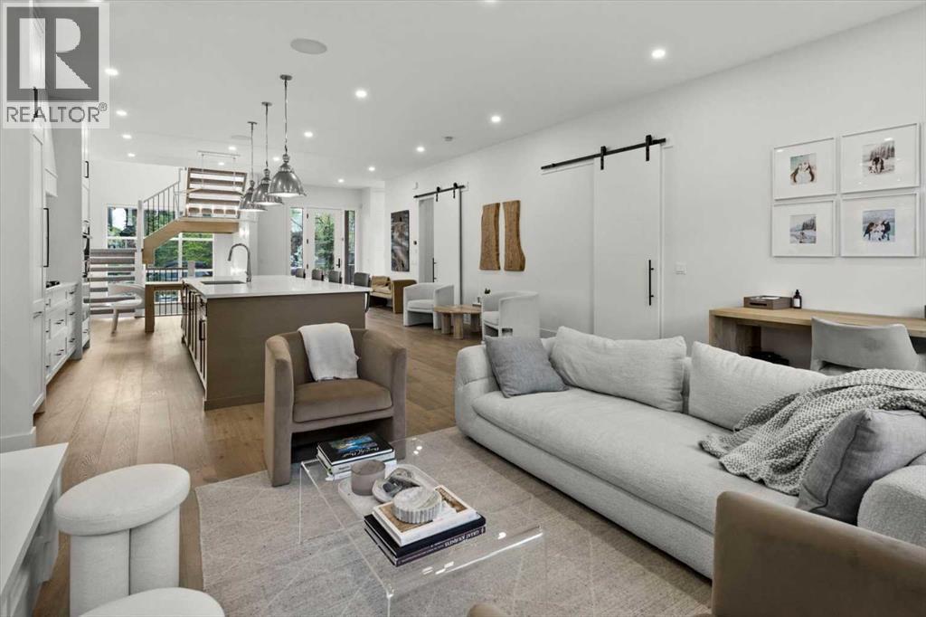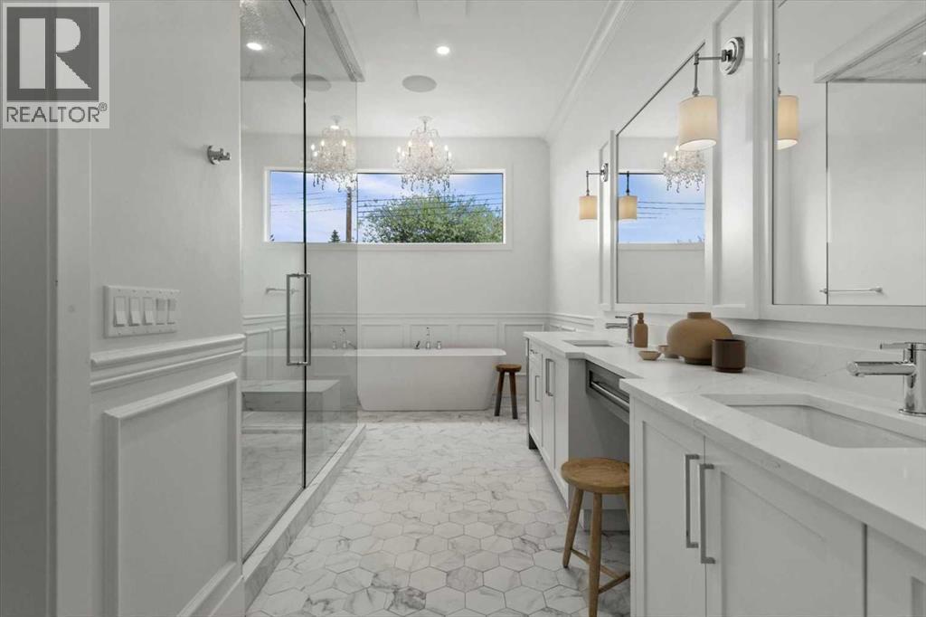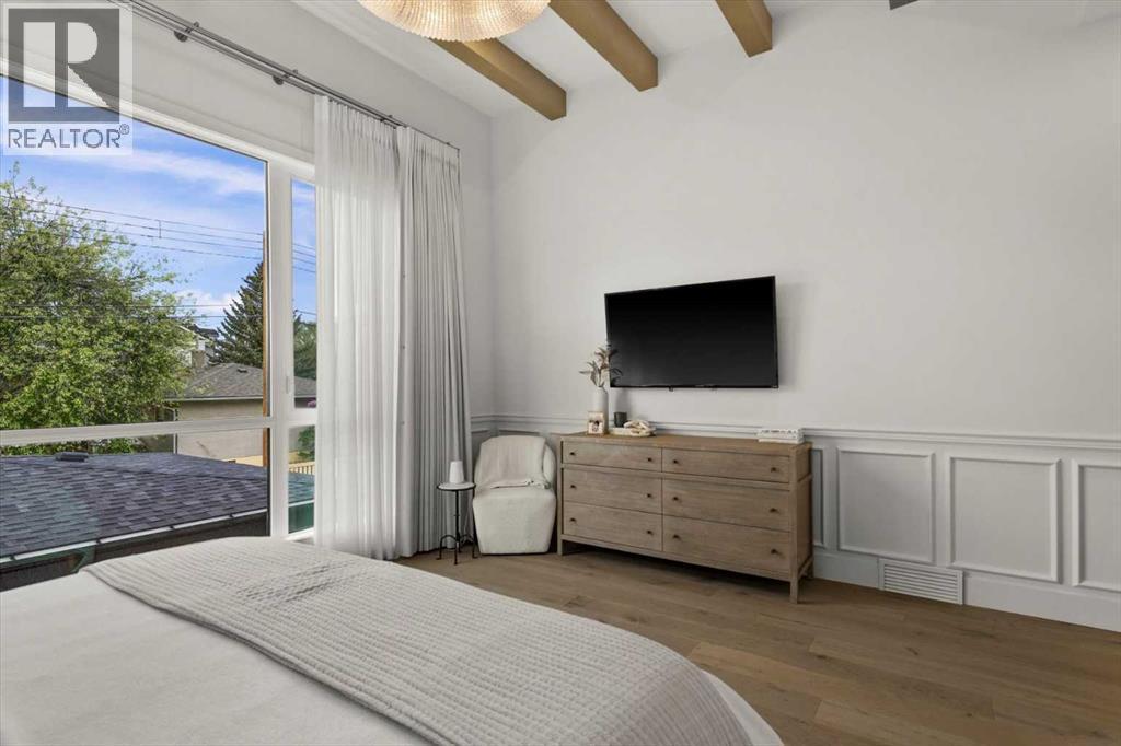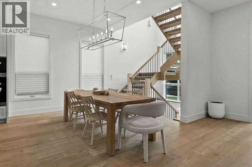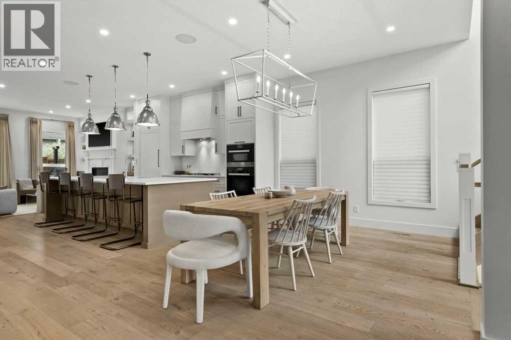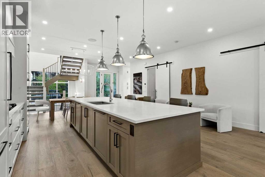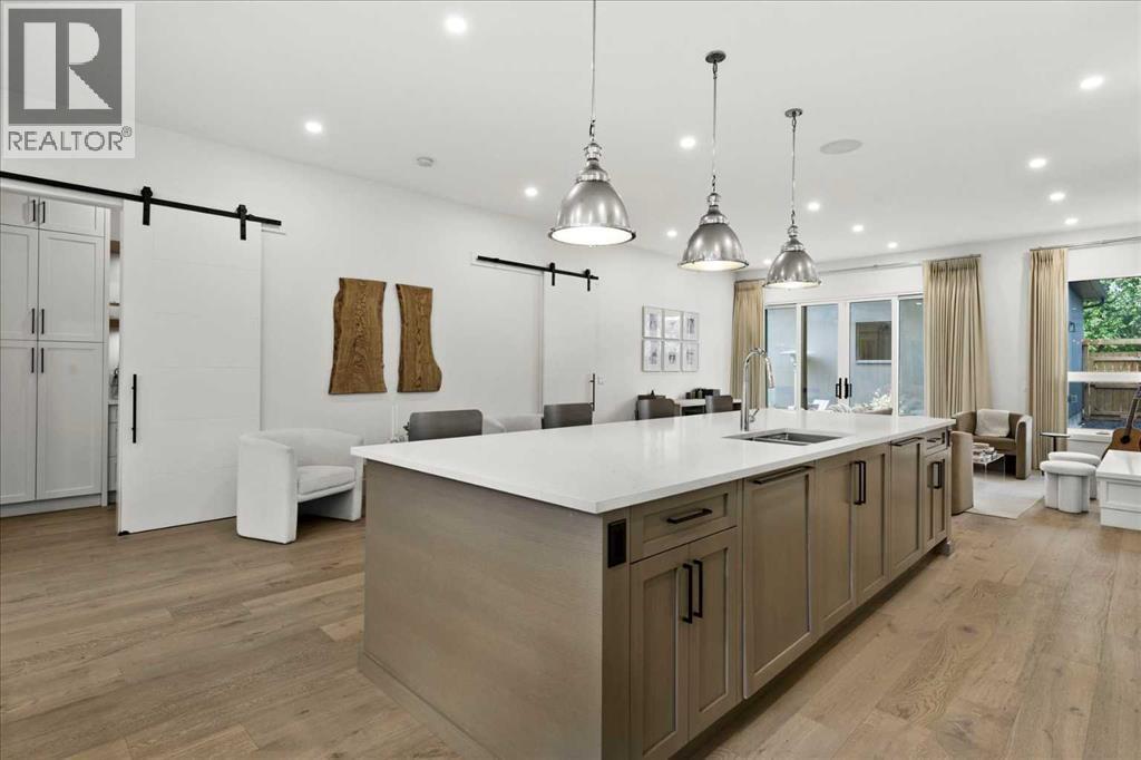 Welcome to this exceptional custom-built executive home offers over 3,700 sqft of beautifully curated living space in the heart of Altadore, one of Calgary’s most sought after inner city communities. Thoughtfully designed with elevated finishes and timeless appeal, this residence features 10 ft ceilings on both the main and upper levels, wide-plank engineered white oak hardwood flooring, and west facing backyard ideal for enjoying a summer evening. The gourmet kitchen is complete with a Miele appliance package including a 5-burner gas cooktop, double wall ovens, paneled refrigerator, quartz countertops, an expansive island with storage, and a custom walk-through pantry complete with pull-out drawers, coffee station, and extensive custom built-ins. The open concept layout is filled with natural light and seamlessly connects the kitchen, designated dining space, and living room which features a gas fireplace with more custom built-ins providing for ample storage. This open concept layout is perfect for everyday living and entertaining. Upstairs, the luxurious primary retreat boasts soaring 12 ft ceilings, a spacious walk-in closet with built-ins, and a spa-inspired ensuite featuring a steam shower, stand-alone tub, dual vanities, heated floors, and designer finishes. Two additional oversized bedrooms with custom light fixtures and Restoration Hardware blackout window coverings, a full bath with dual sinks and in-floor heat, plus a spacious laundry room with ample storage complete the upper level. Be sure to admire the wainscotting detailing throughout the second level. The fully developed lower level offers 9 ft ceilings, in-floor heating, a large family room with wet bar and island, a dedicated glass-walled home gym with rubber flooring, an oversized fourth bedroom, and a stylish 3-piece bathroom. Enjoy the professionally landscaped outdoor space with low maintenance landscaping, west backyard, irrigation system, Gemstone lighting, built in gas BBQ line. Additiona l features include a double detached garage, security system, custom solid core doors, A/C, high-efficiency furnace, Navien boiler, radon mitigation system, built-in speakers, and extensive designer lighting and finishes throughout. Steps from top-rated schools (Altadore Elementary, Rundle Academy, Master’s Academy, Lycée Louis Pasteur), minutes to Sandy Beach, Glenmore Reservoir, River Park, and a quick commute to downtown and the vibrant Marda Loop district, this is inner-city living at its finest with every space curated for comfort, beauty and function. Viewings by private appointment only. (id:6769)