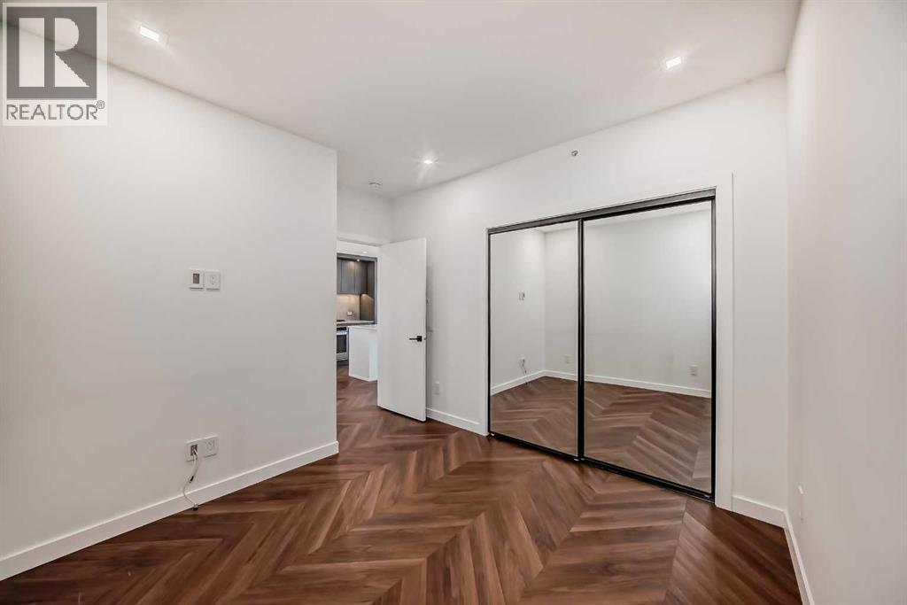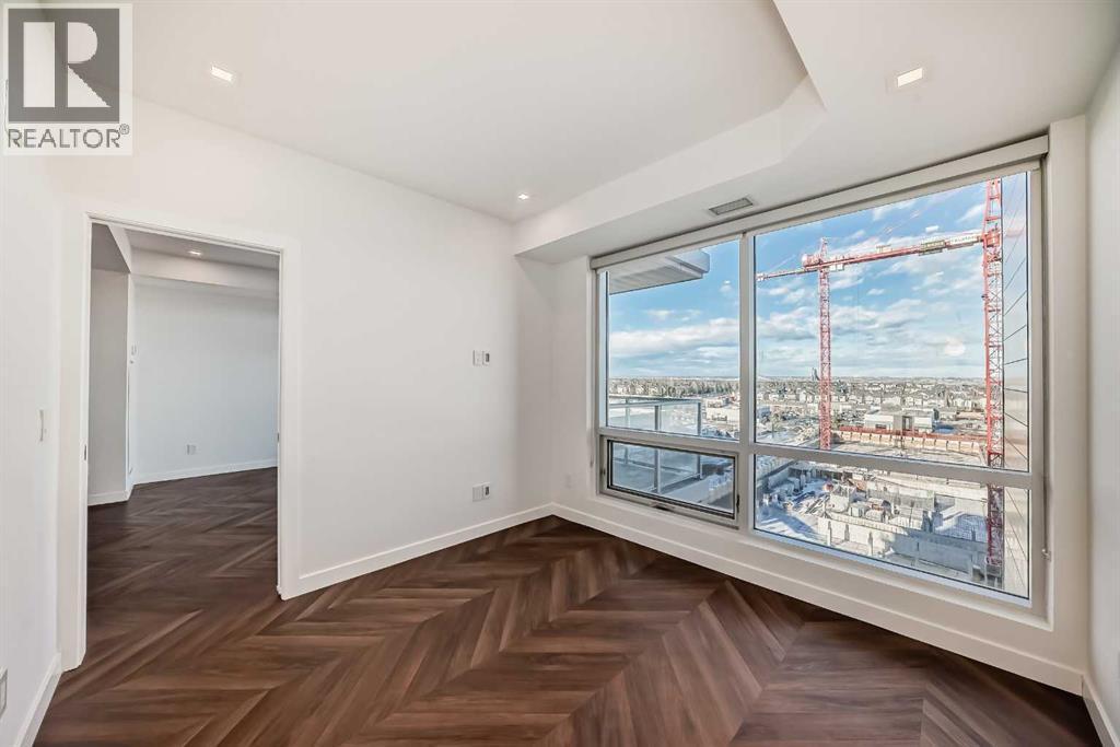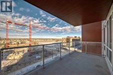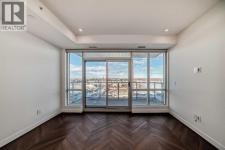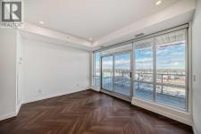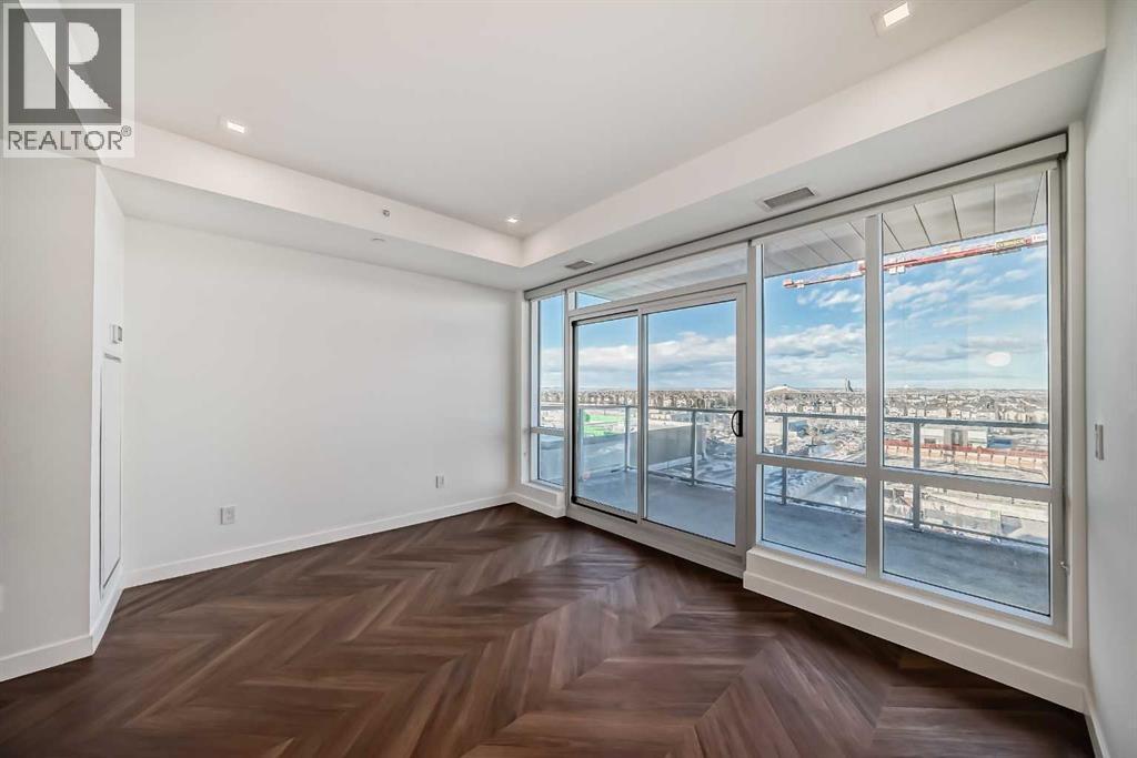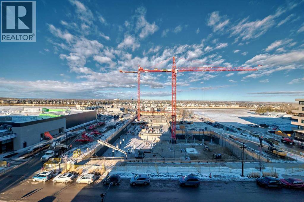 Beautiful 2 bedroom 2 bath condo with mountain views! This condo comes with high end finishings including herringbone flooring, quartz countertops, integrated fridge, floor to ceiling windows, spa-like bathrooms with tile surround shower. The kitchen has an oversized island which allows for seating of 6 people. Cabinets are a beautiful charcoal colour. The living room has huge floor to ceiling windows that offer views of the gorgeous mountains and Calgary. Tons of natural light. The large balcony is covered and has a power outlet and natural gas hookup. The primary bedroom also has floor to ceiling windows with a modern ensuite and walk in closet. Both bathrooms have quartz counters. Pocket doors throughout the unit save space. The location is amazing, close to all amenities, tons of restaurants, cafes, gym and grocery stores. The building is just off Stoney Trail so only 1 hour to Banff and less than an hour to Canmore. 20 minute commute to downtown Calgary! The building has concierge working Mon-Friday in the beautiful lobby. There is a residents lounge in the building which offers tons of space for entertaining and a rooftop terrace. (id:6769)