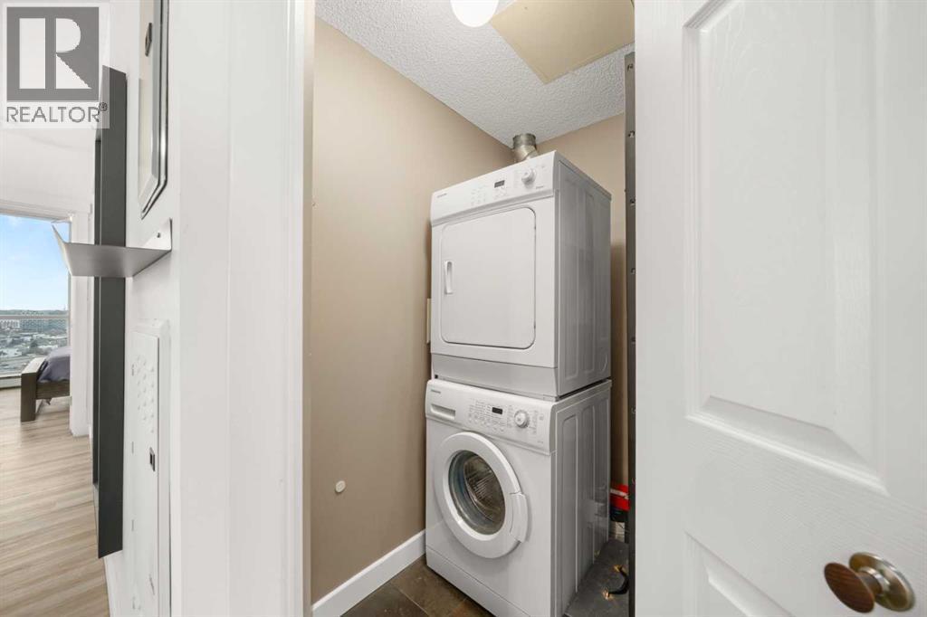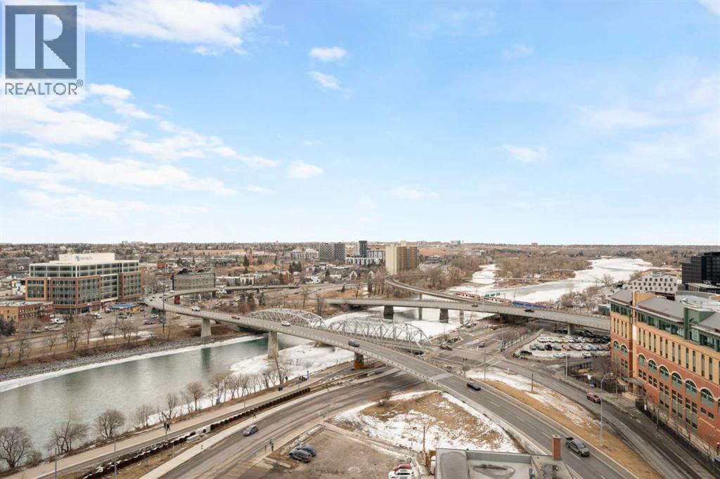 Elevate Your Urban Lifestyle: Stunning NE Corner Condo in East Village with Bow River Views!Imagine waking up to breathtaking, unobstructed panoramas of the Bow River every morning – that's the reality in this sleek 1-bedroom + Den Northeast corner unit, perfectly tailored for ambitious young professionals craving the pulse of downtown Calgary. Floor-to-ceiling windows flood the space with natural light, framing those iconic river views while creating an airy, inspiring environment for your work-from-home setup or evening unwind.Step into a modern kitchen designed for effortless entertaining: ample cabinet space, luxurious granite countertops, and a stylish designer tile backsplash make meal prep a joy. The open layout flows seamlessly to a spacious balcony – your private outdoor retreat for morning coffees or sunset cocktails with friends. Convenience is key with in-suite laundry, a fully equipped fitness room to kickstart your day, and a tandem titled parking stall (ideal for renting out if you prefer biking or transit).Nestled in vibrant East Village, this is more than a home – it's a gateway to the best of urban living. Stroll to trendy restaurants, live music venues, the world-class Central Library, and the scenic Bow River pathways for your daily runs or weekend adventures. Just a 5-minute walk to the +15 skywalk system and public transit, you'll have seamless access to everything downtown offers, from bustling offices to cultural hotspots.Whether you're building your career or seeking a smart investment, this unit delivers exceptional value in one of Calgary's most sought-after neighborhoods. Don't miss out – schedule your viewing today and make this your downtown oasis! (id:6769)