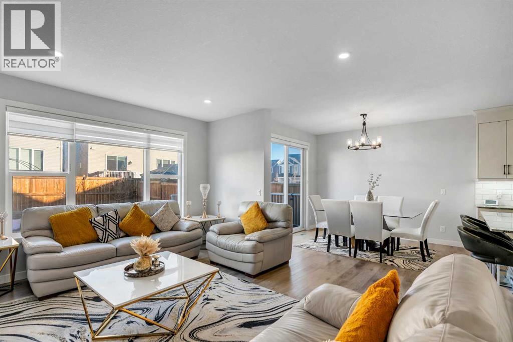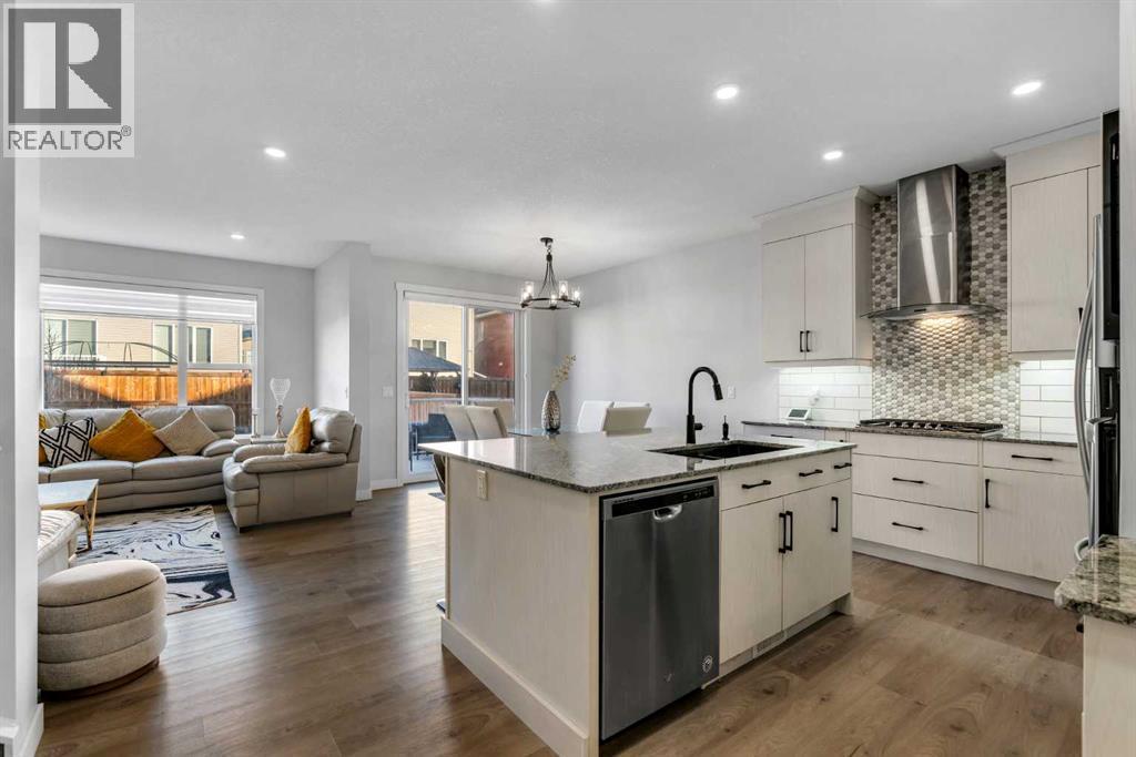 *Watch the video* Home Sweet Home! Fall in love at first sight with this picture-perfect home where luxury meets everyday functionality in the heart of Carrington NW. This fully upgraded, nearly 2,000 SQFT, move-in ready Trico-built home showcases high-end finishes and modern elegance — prepare to be impressed! Located on a quiet, family-oriented street just steps from walking trails and the pond, this home offers the perfect setting for nature lovers. Excellent Location | Bright & Open Floor Plan | Generous Size Backyard | Stunning Chef's Kitchen | Top of the Line Appliances | 3 Spacious Bedrooms (All with walk-in closets) | Vinyl Flooring Throughout | Bonus Room with Vaulted Ceilings | Side Entrance | 9FT Basement Ceilings. Upon entry, a warm and inviting foyer welcomes you into an open floor plan filled with natural light. The state-of-the-art chef’s kitchen is the true showstopper — featuring gorgeous quartz countertops, extensive cabinetry including glass cabinets and wine shelving, sleek black hardware, an upgraded designer backsplash, and a massive island perfect for entertaining. The elegant living room is framed by large windows and a cozy fireplace, creating a warm and inviting space for winter evenings. The spacious dining area comfortably accommodates a 6–8 seat table for family gatherings. Upstairs, upgraded vinyl flooring continues throughout — no carpet whatsoever! The vaulted bonus room is ideal for movie nights or a kids’ retreat. This level offers three generous bedrooms, including a primary suite with a walk-in closet and a private ensuite featuring a tub, glass shower, and dual sinks. Two additional bedrooms with walk-in closets, a full bathroom, and a convenient laundry room complete the upper floor. And with a separate side entrance and an unfinished basement with rough-ins for a future bathroom, wet bar, and laundry, you’re not just buying a home — you’re investing in future potential. Ample of backyaard space - something which would find as a rare feature now days - your kids would love to play around and your summer gatherings would be amazing. Located in a desirable NW Calgary community with quick access to Stoney Trail, schools, parks, and shopping, this home offers the perfect blend of luxury, space, and modern convenience. Don’t miss your chance to own this fully loaded dream home. (id:6769)