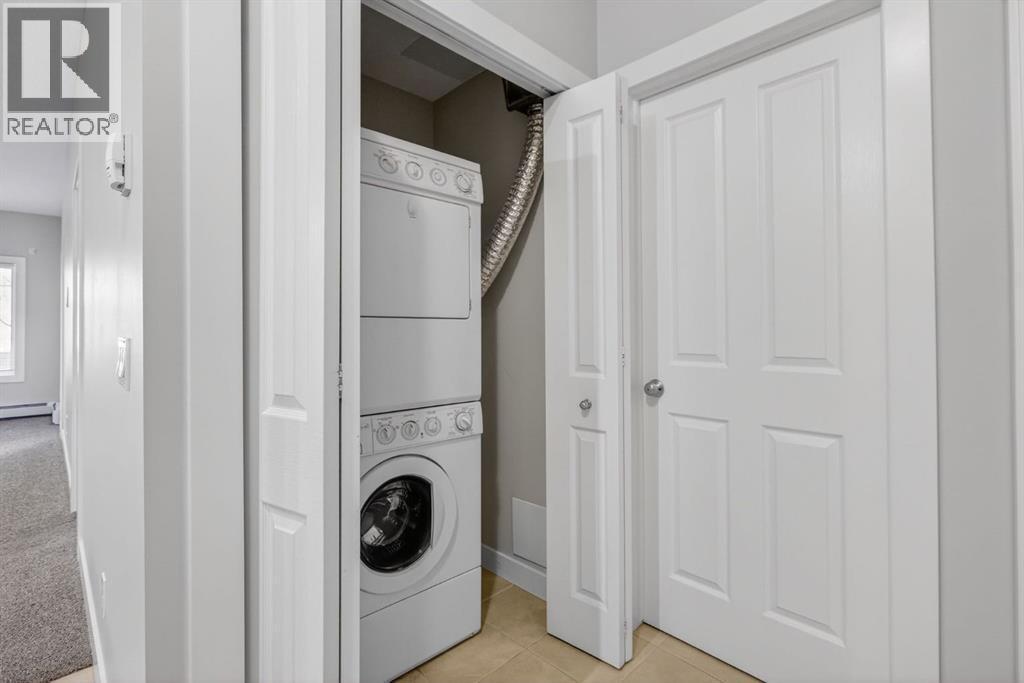 Welcome to this beautifully maintained main-floor condo in the desirable community of Kings Heights in Airdrie. Offering 616 sq ft of thoughtfully designed living space, this 1 bedroom, 1 bathroom home is perfect for first-time buyers, downsizers, or investors seeking comfort, convenience, and low-maintenance living. The open-concept layout creates a bright and functional living space, seamlessly connecting the kitchen, dining, and living areas. The kitchen features warm wood cabinetry, ample counter space, black appliances, and a functional peninsula with sink, making meal prep and entertaining easy and efficient. The living room is spacious and filled with natural light from the large window and patio door. The bedroom is well-sized and offers generous closet space, while the 4-piece bathroom is clean and well-appointed with matching cabinetry and plenty of counter space. Enjoy the convenience of in-suite laundry with a stacked washer and dryer.Located on the main level, this unit offers easy access and a private balcony — perfect for morning coffee or relaxing in the evening. The home also includes a parking stall and a separate storage locker for added convenience. Kings Heights is one of Airdrie’s most sought-after communities, known for its scenic pathways, ponds, and family-friendly atmosphere. Residents enjoy close proximity to schools, parks, shopping, restaurants, and everyday amenities at Kingsview Market. With quick access to Highway 2, commuting to Calgary is simple and convenient.Whether you’re looking for an affordable entry into the market or a fantastic investment opportunity, this well-located condo offers incredible value in a vibrant and growing community. (id:6769)