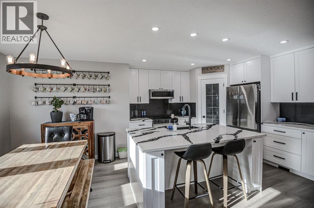 You can stop looking! You have found your new home. This newly renovated house will allow you to move in with no worries. The new Kitchen (2024) with Coffee/Wine Bar area and Pinterest worthy Pantry are just the beginning to this thoughtfully designed house. New LVP Floors (2024) on the Main and new Fireplace stone to help tie it all together. New Furnace & HW Tank (2024). The master bedroom which is also renovated has beautiful views of Nose Creek Park. An Easy low maintenance backyard with a brick patio area great for summer bbq's. Large storage shed and detached garage so you can store your outdoor items and park in your garage all year. Beautifully landscaped front yard with seasonal blooms. Built in Entertainment Center in the Basement Hardwired for Surround sound which you can also use in the updated living room. This house has extra built ins and closet shelving as an added bonus. There is much more, too much to list. Come check it out you won't be disappointed but don't wait too long. This one won't last long. NOTE: check out the list of updates in the supplements! (id:6769)