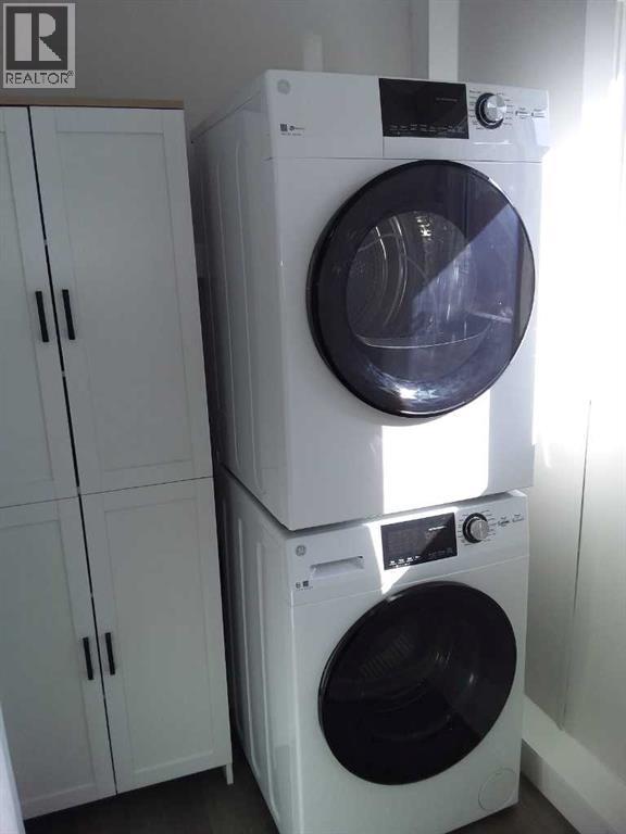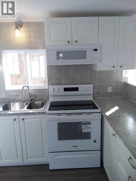 Affordable living at its best! You will enjoy living in your own space with no shared walls. Relax in your private yard, create a garden and bbq on your own patio. This 2 bedroom, 1 bath beauty has been refurbished with stylish vinyl plank flooring throughout and completely refreshed with new paint and modern trim. The bright kitchen has modern white cabinets, a huge peninsula and designer tile backsplash. The home includes all new appliances, (with limited warranties) including a stacked washer / dryer set and microwave / hood fan with direct ventilation. The bedrooms are a good size, with double closets in each. New light fixtures throughout, including LED lights and bulbs. Kitchen and bath fixtures are new and upgraded. Every inch of this home is clean and fresh! The exterior has been clad in maintenance free vinyl siding plus a aluminum soffits. Double paned vinyl windows with new drapes add to the comfort. This home is on a large, level lot that is partially fenced and includes a garden shed on a new base. The parking pad in front has space for 2 vehicles. Immediate occupancy. Listing agent is the current owner. (id:6769)