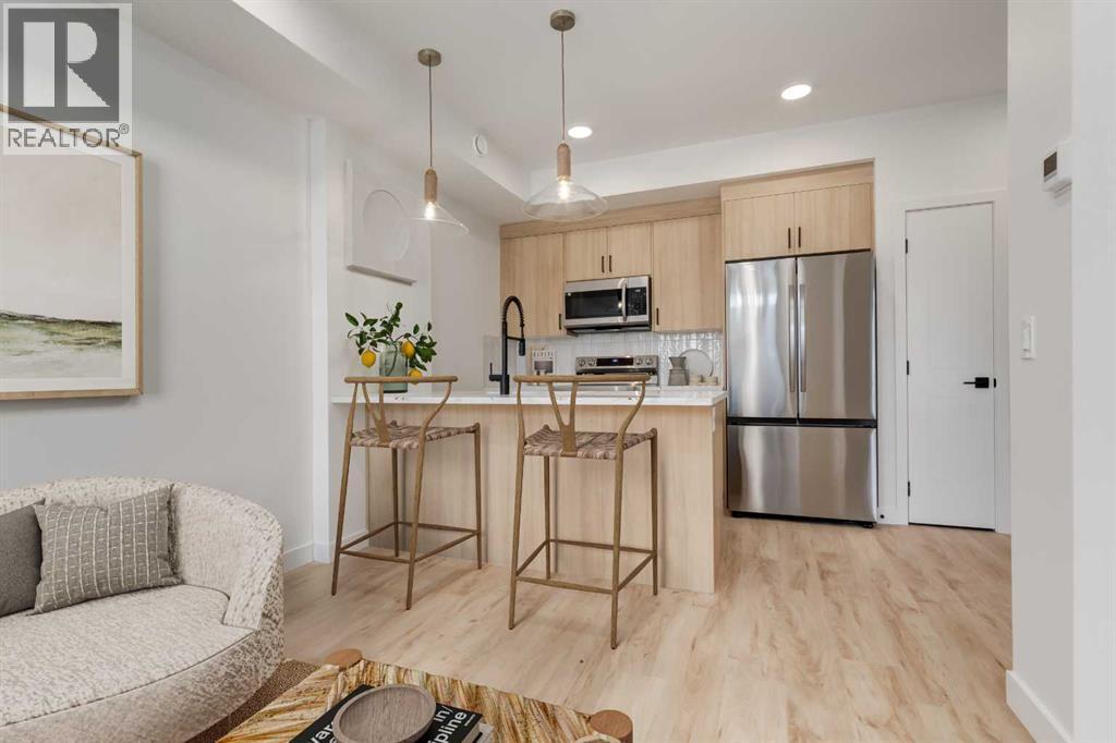 ** Open House at Rohit Livingston Showhome located at: 14798 1 Street NW - Thursday, Mar. 12th 5 to 7pm, Friday, Mar. 13th 2-6pm and Saturday, March 14th 12-5pm ** Discover the Cedar by Rohit Homes, a pre-construction one-bedroom, one-bath single-level condo that blends refined design, smart functionality, and an unbeatable location in the vibrant community of Livingston. Thoughtfully designed for professionals, first-time buyers, or investors seeking low-maintenance living, this stylish unit offers an efficient layout paired with elevated finishes throughout.This home features Rohit’s Ethereal Zen Designer Interior™, inspired by calm, minimalist design with soft tones, clean lines, and natural textures that create a peaceful, modern living environment.Inside, enjoy 9' ceilings and an open-concept layout that maximizes space and natural light. The contemporary kitchen showcases upgraded cabinetry, quartz countertops, a sleek tile backsplash, and stainless steel appliances, seamlessly flowing into the bright dining and living areas. The bedroom is comfortably sized with ample closet space, while the full bath is finished with modern fixtures and refined detailing. In-suite laundry adds everyday convenience.You’ll benefit from Rohit’s new home warranty (1-2-5-10 years), low-maintenance living, and access to shared green spaces designed for ease and lifestyle balance.Located in Livingston, a connected, amenity-rich community with over 200 acres of green space, off-leash areas, bike paths, and the impressive 35,000 sq ft Livingston Hub featuring a gymnasium, splash park, skating rink, tennis courts, and more. With easy access to Stoney Trail, Deerfoot, and the Calgary Airport, this is a smart opportunity in Calgary’s thriving north.Reach out today to learn more about available units, floorplans, and possession timelines. (id:6769)