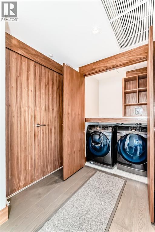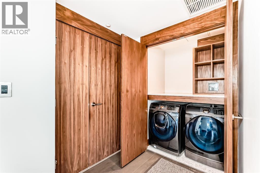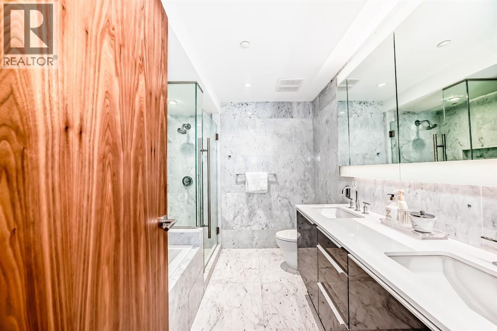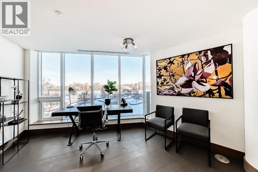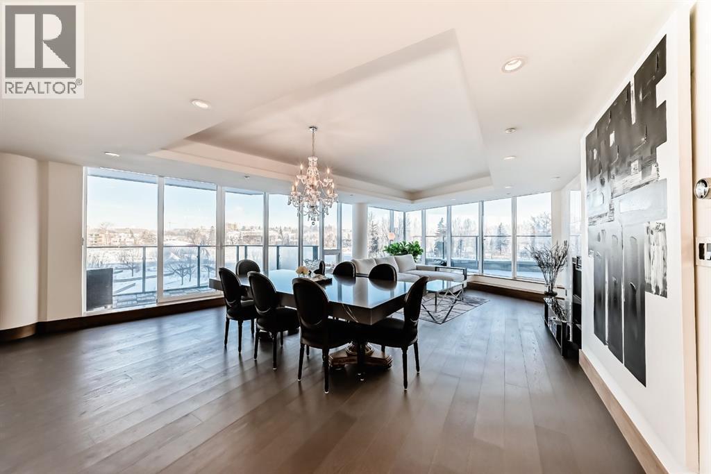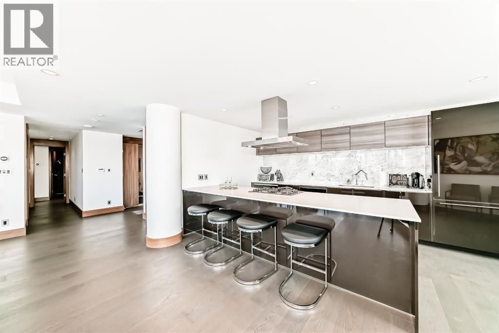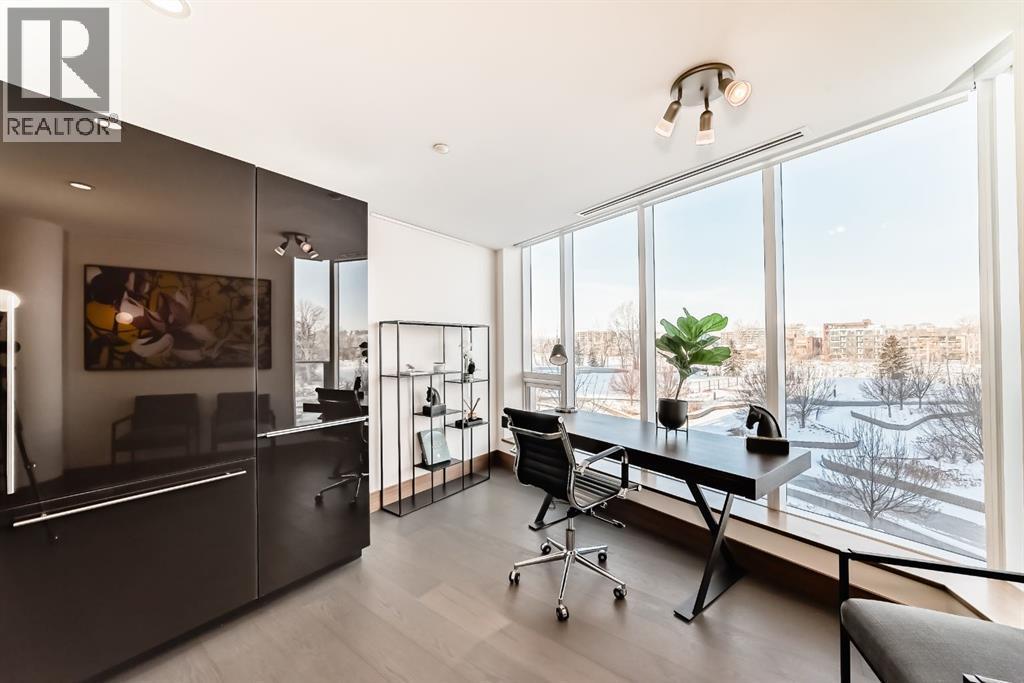 Experience elevated riverfront living in this exceptional original-owner residence at The Concord, ideally situated across from Calgary’s iconic Peace Bridge in prestigious Eau Claire. Offering nearly 2,000 sq. ft. of refined interior space with unobstructed NW and E river views through floor-to-ceiling windows, this luxurious suite features private elevator access to your exclusive foyer, an expansive open-concept layout, hardwood flooring, marble finishes, walnut accents, LED lighting, built-in speakers, heated bathroom floors, and full Control4 automation. The designer Poggenpohl kitchen is equipped with white stone countertops, a large island with seating for four, and premium Miele appliances including a gas cooktop, built-in refrigerator, and wine fridge, seamlessly connecting to the formal dining area and spacious living room with gas fireplace and access to two private balconies. The primary retreat offers balcony access, a custom walk-in closet, and a spa-inspired 5-piece ensuite with dual vanities, marble and glass shower, heated floors, and jetted soaker tub, while the second bedroom also features balcony access and a private 4-piece ensuite with heated flooring. Additional highlights include a separate laundry room, Level 2 EV charging, an oversized private garage, and one of the largest storage units in the building. Residents enjoy 24-hour concierge service, heated underground guest parking, car wash bay with undercarriage wash, fitness centre, elegant party room, and a beautifully landscaped patio with BBQ area overlooking a serene pond that transforms into a winter skating rink—an extraordinary opportunity to own in one of Calgary’s most prestigious addresses. (id:6769)