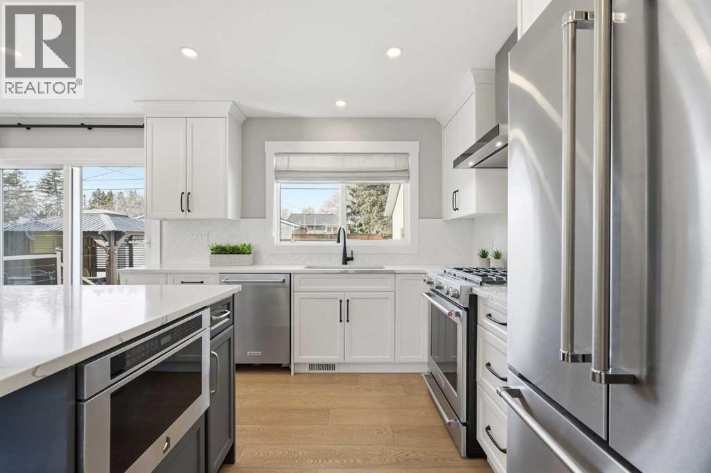 *Open House on Saturday, February 14, 1.30-3.30pm* WELCOME TO A $500,000 FULL-SCALE RENOVATION THAT TRANSFORMS THIS HOME INTO A PRIVATE SPA-INSPIRED RETREAT. Every major system has been redone and every finish thoughtfully selected to create one of the most complete lifestyle properties available in the area.The main level offers a beautifully opened floor plan anchored by a fully custom chef’s kitchen designed for both everyday living and entertaining. Featuring a large island with bar seating, space for a full dining table for six, pot lights, expansive windows, built-in speakers, and custom cabinetry including a built-in pantry, this kitchen is as functional as it is stunning. A herringbone backsplash, pot filler, and five-burner gas range elevate the space, while the refined gas fireplace and patio doors create seamless indoor-outdoor flow to the backyard.Upstairs features two bedrooms including a stunning primary retreat with custom built-in cabinetry, walk-in closet, and spa-inspired ensuite with steam shower and direct access to the back deck and hot tub. A second bedroom and full 4-piece bath complete the level.The professionally landscaped backyard is designed to impress with high-end turf for year-round green, custom water feature, paving stone patios, gazebo, mature landscaping with low-voltage lighting, and exterior hot and cold water tap. It truly lives like a resort.The lower level continues the experience with a large bedroom with egress window, full bathroom, dry sauna, incredible laundry room, and an over-the-top wet bar style setup offering flexible living options.Additional upgrades include spray foam insulation, air conditioning, on-demand boiler system, heated bathroom floors upstairs and down, Hardy board siding, Sonos system inside and out, new appliances, sprinkler system, and an oversized heated double garage with vaulted ceiling height suitable for a lift.Located in a friendly, established neighbourhood just minutes to everythi ng, this is not just a renovated home. It is a complete lifestyle upgrade. (id:6769)