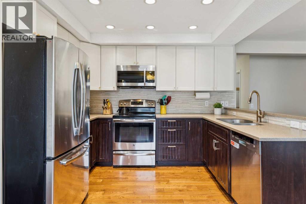 OPEN HOUSE - Saturday Mar 7th 1:00-3:00pm - Welcome to your bright and breezy family haven in Woodbine—where comfort, style, and practicality all decided to move in together....Step inside to a main floor that feels instantly welcoming, with vaulted ceilings and a beautiful bay window that drenches the living room in natural light. Rich hardwood flooring leads you into the dining area, where a modern chandelier sets the mood and an impressive stone-faced fireplace adds both warmth and a touch of drama....The updated kitchen is ready for both everyday meals and weekend entertaining, featuring stainless steel appliances and a raised breakfast bar that overlooks the dining room—perfect for chatting with guests or supervising homework while you cook....Head upstairs to find three generously sized bedrooms. The serene primary retreat offers a walk-in closet and a private full ensuite, creating your own little escape at the end of the day. Two additional bright bedrooms share another full bathroom, giving everyone space and privacy (and reducing the morning line-up)....Everyday living is made easier with a convenient main-floor laundry room, complete with a modern LG washer and dryer—because hauling baskets up and down stairs is overrated....Outside, the backyard is truly an extension of your living space. A fully fenced yard offers peace of mind, while the wooden deck and permanent pergola over the paved patio set the stage for al fresco dining, sunset lounging, or a quiet coffee before the day begins. The massive children’s play structure will make you very popular with the younger crowd....The basement offers a flexible space that can adapt as your life does—home office, gym, hobby room, or extra storage—it’s ready for whatever you need...A practical bonus: the double attached garage keeps your vehicles warm, your storage organized, and your snow shoveling time to a minimum....Set in the established community of Woodbine, this home enjoys a prime southwest location. Yo u’re conveniently close to the Ring Road, giving you easy commuting access around the city and a quick escape to the west and the mountains for weekend adventures. Adjacent to the community, Fish Creek Provincial Park offers endless nature trails, biking paths, and river views—so you can trade screen time for green time in just a few minutes...Tucked on a quiet, family-friendly crescent, with nearby schools, parks, major transit routes, and essential amenities, this is a home where everyday life becomes just a little more effortless—and a lot more enjoyable. (id:6769)