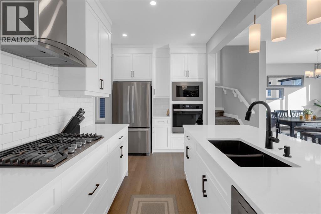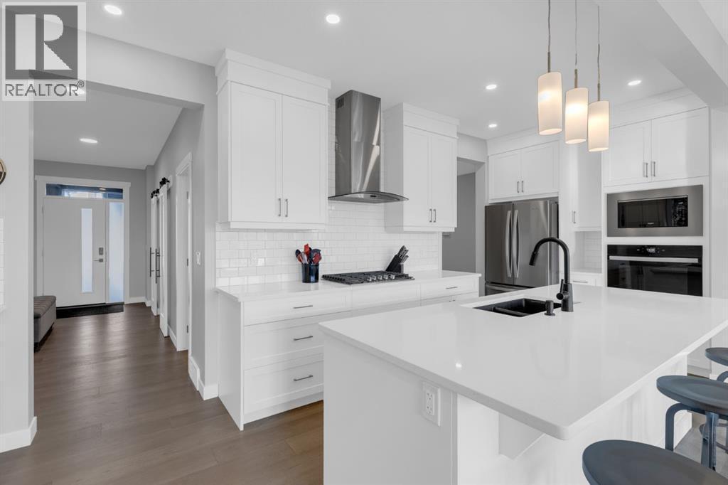 Welcome to this EXCEPTIONALLY UPGRADED detached home in the desirable, LUXURY neighborhood of PRECEDENCE, where picturesque views & architecture meet everyday convenience and stunning NATURAL SURROUNDINGS! With over $110k in UPGRADES INSIDE & OUT, step inside to discover thoughtful enhancements that set this, 2484 sq ft (above grade), home far apart from typical spec-built homes. The main floor impresses with a grand entrance including a handy HOME OFFICE/DEN space enclosed with barn sliding doors, a large closet, and a perfectly tucked-away half bath. ENGINEERED HARDWOOD leads throughout the open-concept main level with 9 FT CEILINGS and an abundance of NATURAL LIGHT! Custom blinds encompass the many large windows throughout the home. The beautiful feature FIREPLACE is definitely the focal point in the family-friendly GREAT ROOM! The GOURMET KITCHEN shines with built-in stainless steel appliances including a GAS COOKTOP, full-height cabinetry, QUARTZ counters, under-cabinet lighting, and a SIL GRANITE sink! There's no shortage of storage, with the added bonus of a custom COFFEE/WINE/SERVING BAR that also provides extra cabinets—perfect for hosting & entertaining! A generous WALK-IN PANTRY and large mudroom with another large closet complete the main level. Upstairs greets you with wide-open spaces: a large BONUS ROOM, 2 SECONDARY BEDROOMS both with walk-in closets, a large 4-piece bathroom with full height tiled tub surround, and even an extra bonus space perfect for a reading nook, tech area, or play room! The master retreat does not disappoint—easily fits king-sized furniture—and has a spa-like 5-PIECE ENSUITE including a FULLY TILED 10 MIL GLASS SHOWER with bench, large soaker tub, and HIS & HER VANITIES. A large walk-in/walk-thru closet provides easy accessibility to the laundry room as well! Outside is a MAINTENANCE-FREE PARADISE: professionally landscaped with 3 DECKS, ARTIFICIAL TURF, and a concrete block patio complete with WOOD-BURNING FIRE PIT and wood sh ed! The 9 FT WALK-OUT BASEMENT includes 4 LARGE WINDOWS (3 egress), bathroom rough-in, and almost 1000 SQ FT of endless possibilities for future development! AIR CONDITIONING, DUAL CLIMATE ZONE CONTROL, as well as a TANKLESS WATER HEATER and a 4400 WATT 10-PANEL SOLAR PANEL SYSTEM (estimated 5,515 kWh/year production - $15K system), were added reducing energy costs and increasing comfort, all while supporting eco-friendly living. The sellers cherish the home's close proximity to the ridge/river pathways, the SLS rec centre, and shopping. Highway access is quick & easy too! Beautiful quiet community, stunning river/town views, prime location & smart upgrades make this home more than just a property—it's a lifestyle and a place to build memories, entertain effortlessly, and enjoy modern comfort! Ideal for growing families or those seeking quality without compromise. Schedule your private showing today and see why this Cochrane gem stands out! (id:6769)