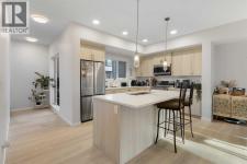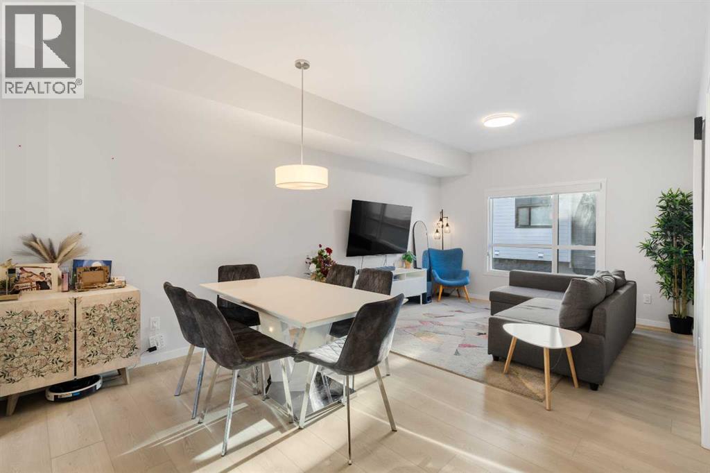 Tucked in the vibrant and family-oriented community of Seton in Southeast Calgary, this beautifully appointed 3-bedroom townhome offers an ideal balance of comfort and convenience.The main floor welcomes you with a bright open-concept layout, with an elegant kitchen featuring stylish and full height cabinetry, stainless steel appliances, modern countertops, and a tasteful backsplash. The extensive island transitions into a large dining room and a spacious living area, while a large south-facing window fills the space with natural sunlight throughout the day. Enjoy the peaceful view of the community from a 12’ by 6’ balcony. Just perfect for your relaxation and entertainment! Also on this floor, a bonus den/home office provides the perfect space for working from home or for extra family needs.Upstairs, the primary suite features a sizeable walk-in closet, a lush ensuite with a standing shower and double vanity. Two additional bedrooms (perfect for kids and guests), a 4-piece main bath, and a roomy laundry area adds convenience for family living.Park your car in the safe double side by side garage, put on your walking shoes and step out to have a feel of the bespoke amenities and beautiful views outside your front door.Perfectly situated near the South Health Campus Hospital, top-rated schools, shopping, restaurants, and parks, this pet friendly complex offers the ideal balance of comfort, convenience and serenity.You’ll feel right at home in this spacious 1,814.96 Sq ft town home. (id:6769)