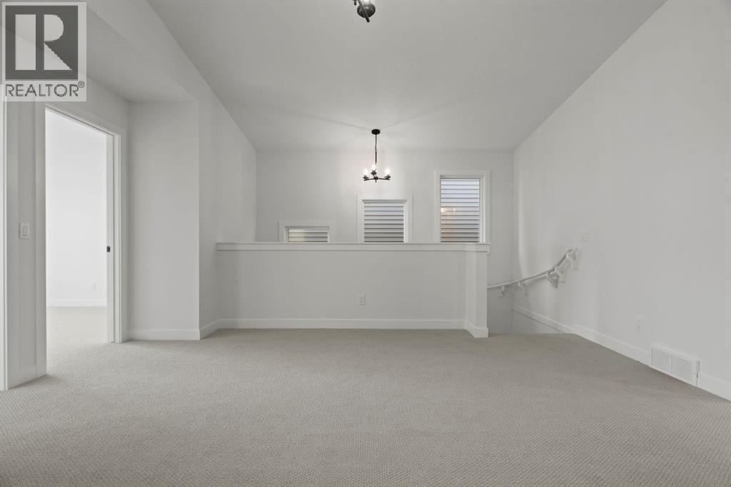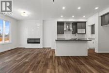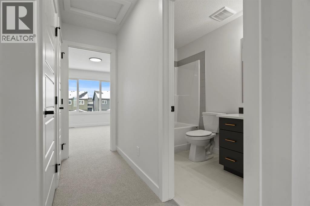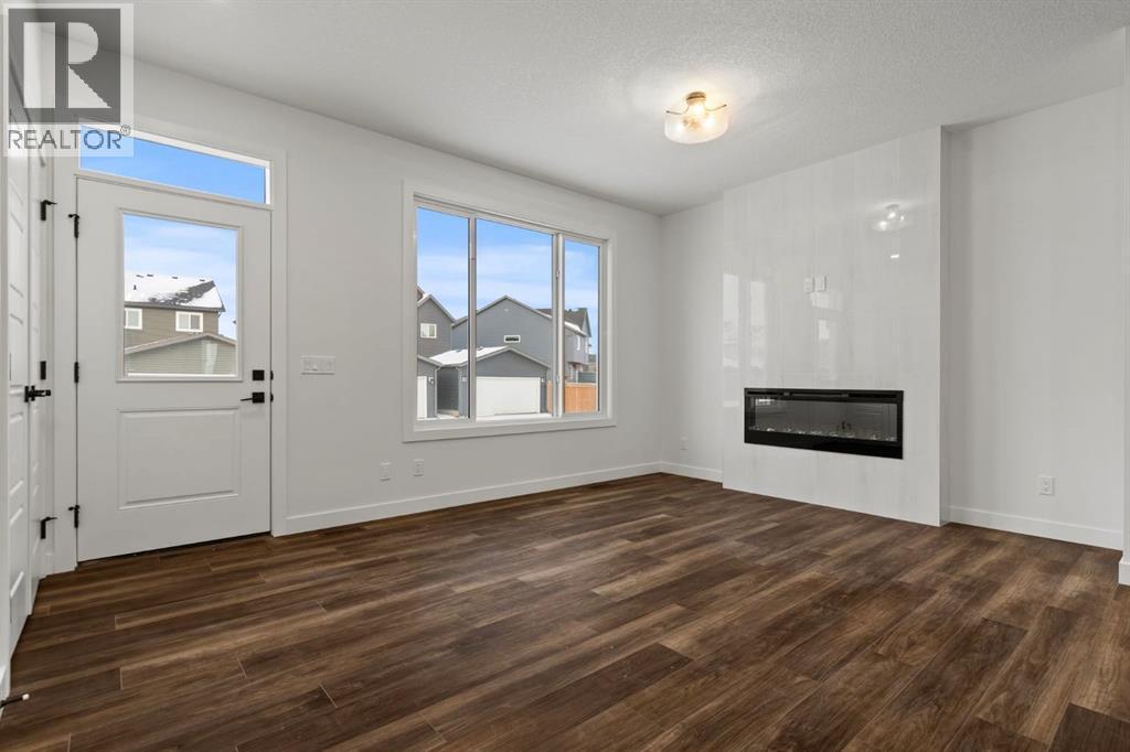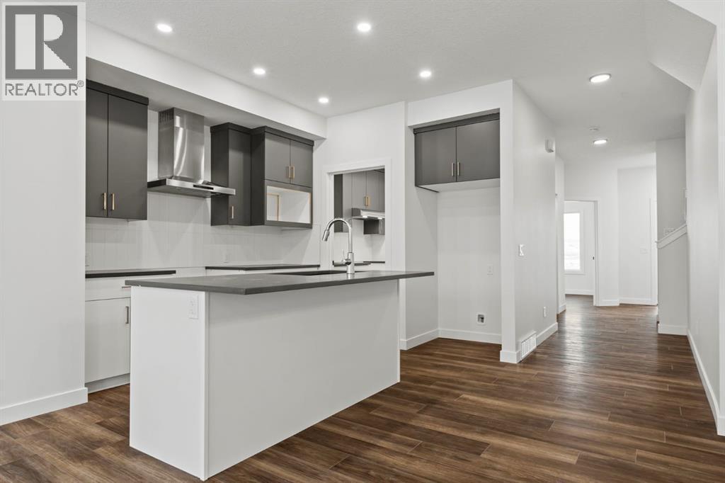 Welcome home to the Jade L — a beautifully upgraded laned home that combines modern design, thoughtful functionality, and refined finishes in the vibrant community of Lanark. Built by Sterling Homes Calgary, this residence showcases designer-curated interior selections and quality craftsmanship throughout, offering a truly move-in-ready experience. The main floor is bright and inviting, featuring wide-plank luxury vinyl flooring and an open-concept layout designed for both everyday living and entertaining. At the heart of the home, the chef-inspired kitchen impresses with quartz countertops, an oversized island with undermount sink, stainless steel appliances, sleek cabinetry with gold hardware, and a striking chimney-style hood fan. A fully equipped spice kitchen with gas range adds exceptional versatility and is a standout feature for home chefs. The living area is anchored by a contemporary electric fireplace with floor-to-ceiling tile, creating a warm and elegant focal point, while large windows flood the space with natural light. A main-floor bedroom and full bathroom provide ideal flexibility for guests, multigenerational living, or a private home office. Additional highlights include a walk-in pantry with built-in shelving, modern lighting, and clean-lined interior doors that enhance the home’s modern aesthetic. Upstairs, the thoughtfully designed layout continues with a vaulted-ceiling bonus room featuring a skylight, offering a bright and airy space perfect for family movie nights, a play area, or a quiet retreat. The primary suite is a true sanctuary, showcasing a spa-inspired 5-piece ensuite with dual sinks, a standalone soaker tub, a tiled shower, and a large window that fills the space with natural light. A spacious walk-in closet with custom wire shelving completes the retreat.Secondary bedrooms are generously sized with large windows and ample closet space, complemented by a well-appointed main bathroom finished with quartz countertops and contempora ry fixtures. Convenient upper-level laundry adds everyday practicality. This home is also equipped with a full smart-home package, including a programmable thermostat, Ring video doorbell, smart front door lock, and motion-activated switches—all controlled through an Amazon Alexa touchscreen hub. With upscale finishes, a functional and flexible floor plan, and standout features rarely found at this price point, the Jade L offers modern living at its finest in one of Airdrie's newest and most exciting communities. (id:6769)