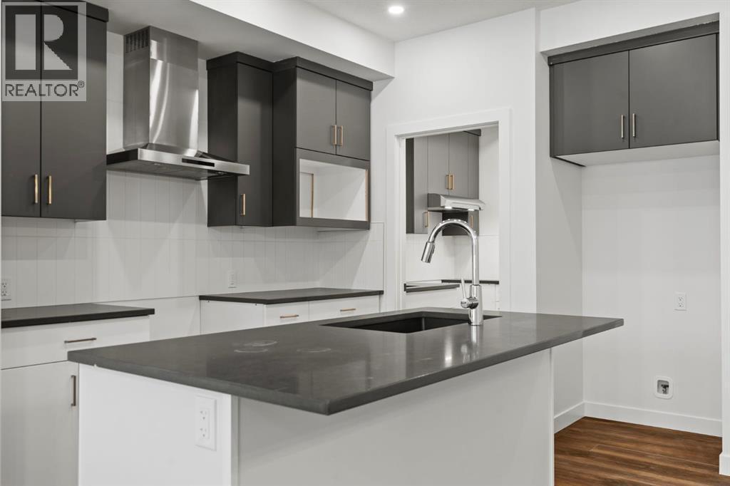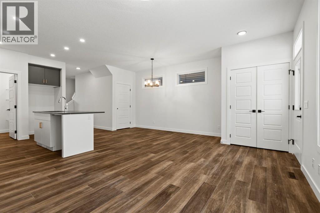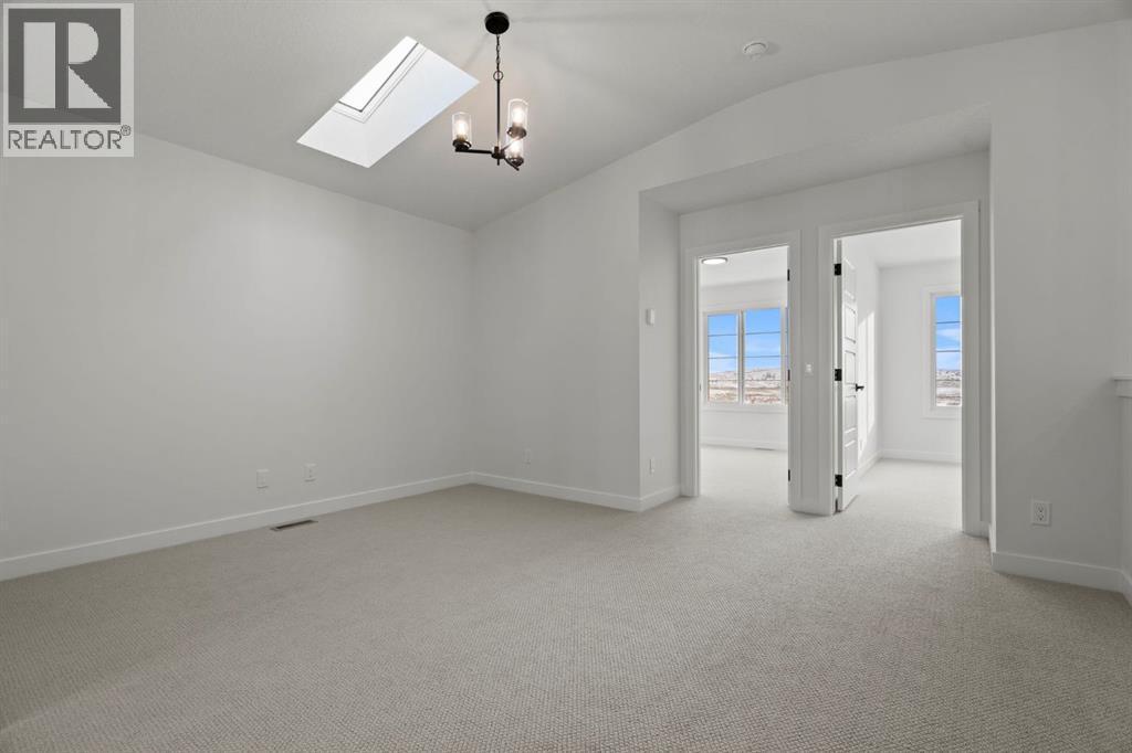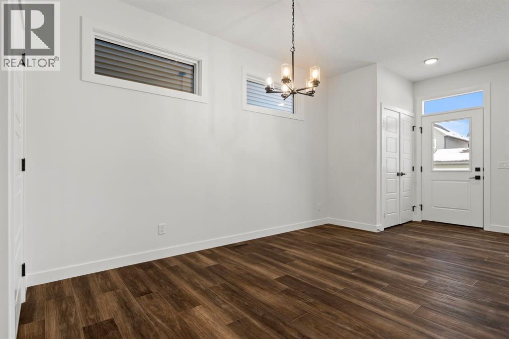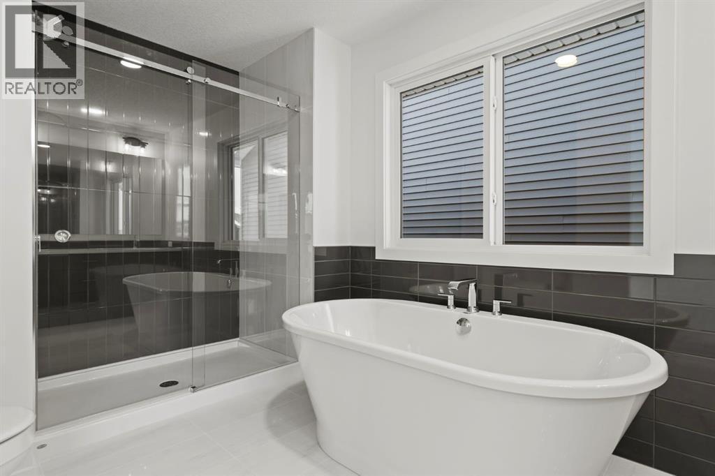 Welcome home to the Jade L — a beautifully upgraded laned home that combines modern design, thoughtful functionality, and refined finishes in the vibrant community of Lanark. Built by Sterling Homes Calgary, this residence showcases designer-curated interior selections and quality craftsmanship throughout, offering a truly move-in-ready experience. The main floor is bright and inviting, featuring wide-plank luxury vinyl flooring and an open-concept layout designed for both everyday living and entertaining. At the heart of the home, the chef-inspired kitchen impresses with quartz countertops, an oversized island with undermount sink, stainless steel appliances, sleek cabinetry with gold hardware, and a striking chimney-style hood fan. A fully equipped spice kitchen with gas range adds exceptional versatility and is a standout feature for home chefs. The living area is anchored by a contemporary electric fireplace with floor-to-ceiling tile, creating a warm and elegant focal point, while large windows flood the space with natural light. A main-floor bedroom and full bathroom provide ideal flexibility for guests, multigenerational living, or a private home office. Additional highlights include a walk-in pantry with built-in shelving, modern lighting, and clean-lined interior doors that enhance the home’s modern aesthetic. Upstairs, the thoughtfully designed layout continues with a vaulted-ceiling bonus room featuring a skylight, offering a bright and airy space perfect for family movie nights, a play area, or a quiet retreat. The primary suite is a true sanctuary, showcasing a spa-inspired 5-piece ensuite with dual sinks, a standalone soaker tub, a tiled shower, and a large window that fills the space with natural light. A spacious walk-in closet with custom wire shelving completes the retreat.Secondary bedrooms are generously sized with large windows and ample closet space, complemented by a well-appointed main bathroom finished with quartz countertops and contempora ry fixtures. Convenient upper-level laundry adds everyday practicality. This home is also equipped with a full smart-home package, including a programmable thermostat, Ring video doorbell, smart front door lock, and motion-activated switches—all controlled through an Amazon Alexa touchscreen hub. With upscale finishes, a functional and flexible floor plan, and standout features rarely found at this price point, the Jade L offers modern living at its finest in one of Airdrie's newest and most exciting communities. (id:6769)