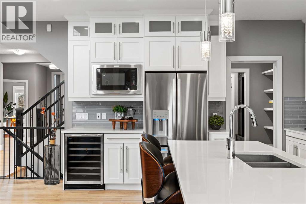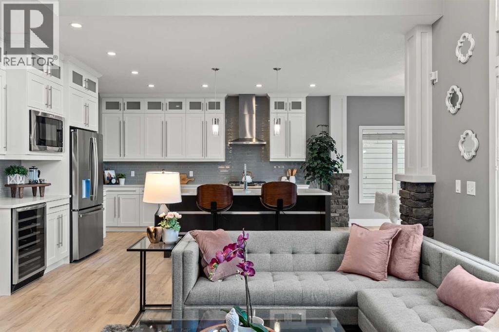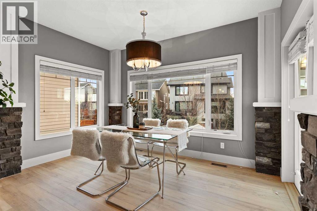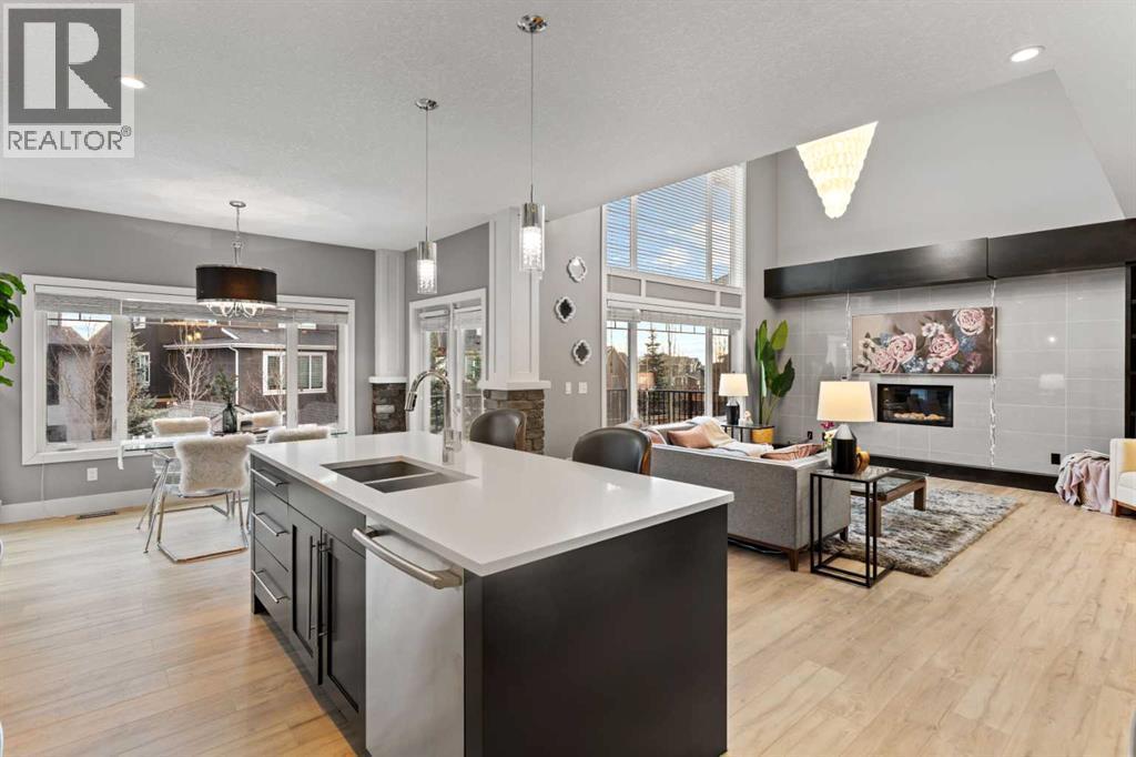 Located in the heart of Aspen Woods, this beautifully refreshed walkout home offers 2,654 sq.ft. of thoughtfully designed living space with an emphasis on light, scale, and everyday functionality. Built in 2013 and recently tastefully updated, it’s a home that feels open, comfortable, and truly move-in ready. The main floor features 9’ ceilings and a striking 18’ open-to-above living room, complete with a gas fireplace, custom built-ins, and large windows that fill the space with natural light. New LVP flooring and fresh paint give the home a clean, modern feel. The kitchen connects seamlessly to daily life and is complemented by a pass-through pantry and mudroom with built-in cabinetry, allowing easy access from the garage to the kitchen. A bonus main-floor office and the dining area opens onto a balcony, ideal for everyday gatherings. Upstairs, the primary suite is a true retreat, offering vaulted ceilings, a 2-way gas fireplace, a large walk-in closet, and a spa-inspired ensuite with an oversized glass shower, soaker tub, and a built-in window seat. The upper-floor laundry is thoughtfully positioned with access from both the primary ensuite and the hallway. 2 additional bedrooms and a full bathroom complete this level, along with a bonus room featuring 9-foot ceilings perfect for family time. The walkout basement adds excellent flexibility with 2 additional bedrooms, a full bathroom, and a bright living area filled with windows and an oversized glass patio doors that open to a covered patio and landscaped yard, perfect for summer evenings. With 5 bedrooms, 4 bathrooms, a walkout design, and a prime location close to top schools, parks, pathways, and amenities, this Aspen Woods home offers the space, comfort, and lifestyle move-up families are looking for in one of Calgary’s most sought-after west-side communities. (id:6769)