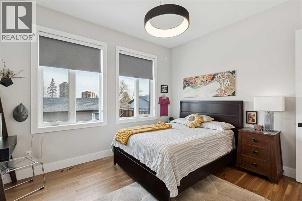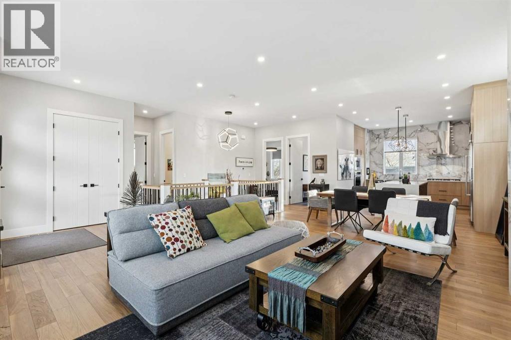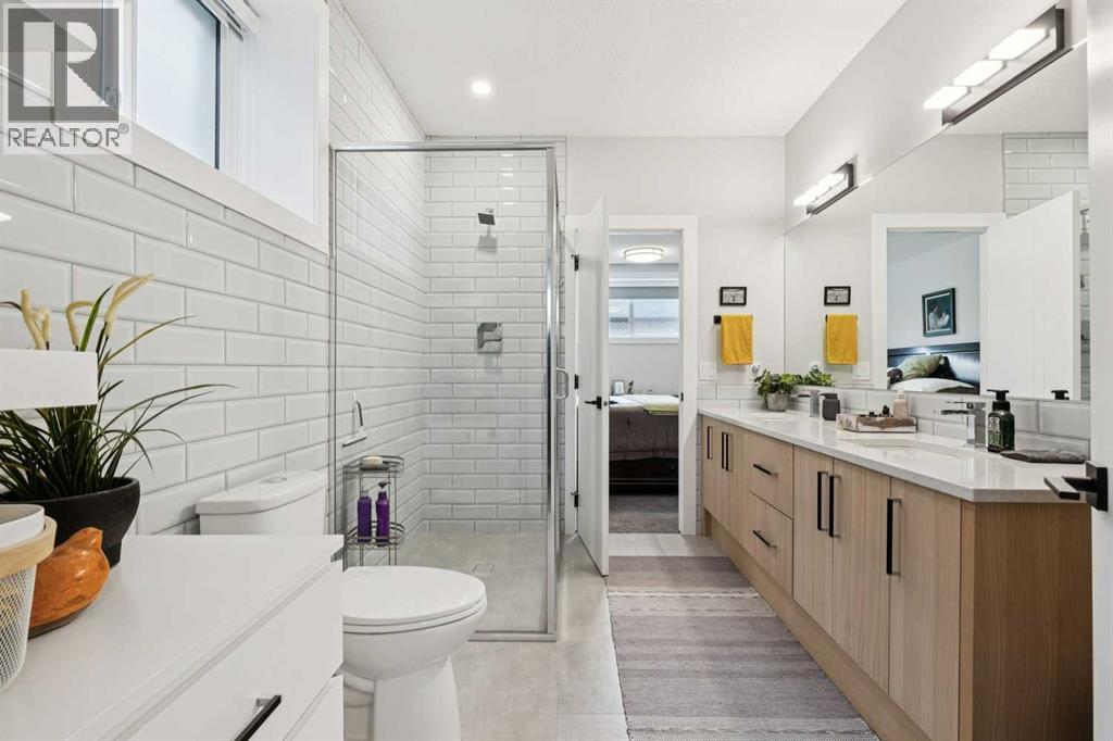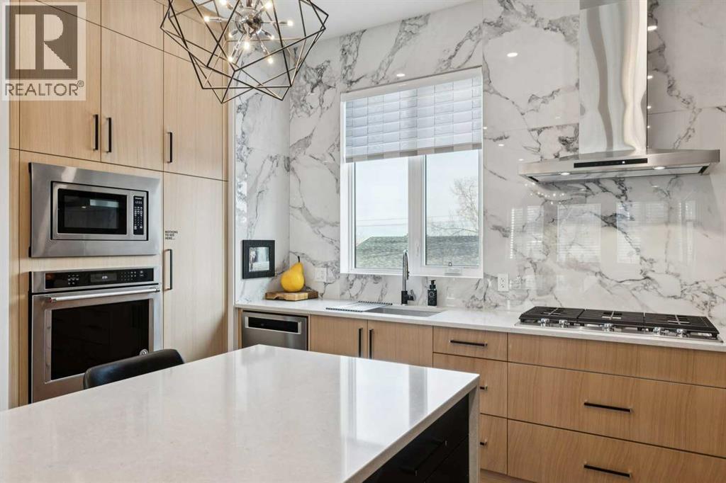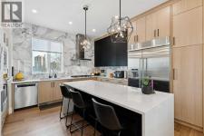 This modern masterpiece has been completely transformed from the foundation up, combining exceptional craftsmanship, custom finishes, and luxurious details throughout. Spanning over 2,900 sq. ft. of thoughtfully designed living space across two levels, with four elegantly appointed bedrooms, this custom bungalow epitomizes refined luxury in the highly sought-after family neighbourhood of Haysboro. Set on an oversized 50’ x 140’ lot on one of the community’s most serene, tree-lined streets, the property includes a triple garage with a fully serviced 839+ sq. ft. workshop/studio above, offering extraordinary potential for a guest house, home office, gym or private studio. The expansive grounds provide privacy, mature landscaping, and generous outdoor entertaining space, rare in inner-city living. Extensive structural enhancements include an extended and raised foundation, creating soaring ceiling heights and expanded square footage on both levels. The sun-filled main floor boasts 10-foot ceilings, walnut hardwood floors, and a sophisticated open-concept layout designed for both everyday living and elegant entertaining. The gourmet designer kitchen features built-in KitchenAid appliances, an oversized 48” refrigerator, full-height porcelain slab backsplash, premium lighting, and flows seamlessly into the living area, anchored by a 42” Napoleon gas fireplace. The main level includes two luxurious bedrooms, each with its own private ensuite, including a serene primary retreat with a spa-inspired 6-piece ensuite, premium fixtures, and a discreet hidden entry to the walk-in closet. A stylish powder room completes the main floor. The fully developed lower level continues the elevated design with 9-foot ceilings, a generous recreation and entertaining area with custom wet bar, and two additional large bedrooms connected by a Jack-and-Jill 5-piece bathroom, ideal for a growing family or private guest quarters. Outdoors, the private, professionally landscaped backyard offers a tranquil oasis, perfect for relaxing or entertaining. Ideally located in Haysboro, the home is steps from parks, playgrounds, walking paths, and green spaces, and minutes from top-rated schools, Chinook Centre, Rockyview Hospital, and major transit routes including LRT access. Quick connections to downtown and major roadways make commuting effortless, while the neighbourhood’s mature trees, strong community spirit, and family-friendly atmosphere enhance long-term desirability. A rare, one-of-a-kind offering, defined by meticulous attention to detail, high-end finishes, sophisticated architectural planning, and an exceptional location. Book your private viewing today! (id:6769)