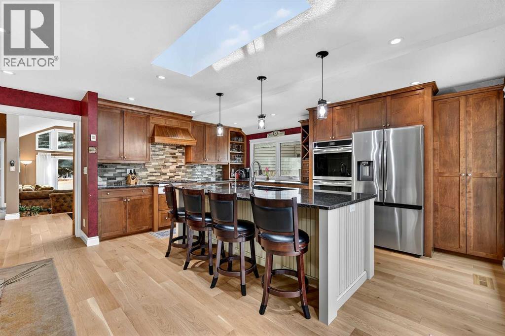 Welcome to this lovingly maintained Oakridge home where timeless character, thoughtful updates, and exceptional indoor and outdoor living come together on one of the largest pie shaped lots in the community.Step inside to a private foyer that creates a natural transition from outdoors to in and provides a comfortable space for family and guests to settle in. This entrance still showcases the home’s original front door, setting the tone for the warmth and charm found throughout. Beyond the second entry, the home opens into a bright and airy living space featuring soaring ceilings and abundant natural light. The spacious living room offers a cozy gas fireplace with a beautiful brick surround and a large bay window that fills the room with sunshine, while the tiered upper living area creates excellent flow for both daily living and entertaining.The kitchen is truly the heart of the home and designed for gathering. It features a massive island, granite countertops, generous cabinetry, and an additional wet bar, making it perfect for hosting family dinners, holiday celebrations, or casual evenings with friends. The stainless steel appliance package includes a Wolf range, brand new dual ovens, a one year old refrigerator, dishwasher, and built in microwave. A reverse osmosis tap that feeds the refrigerator provides added convenience and water quality. Sliding patio doors lead to the expansive back deck, creating an ideal space for morning coffee, summer barbecues, and seamless indoor outdoor entertaining.The primary retreat offers a peaceful escape with sliding glass door access to the deck. The spa inspired ensuite features a 40 gallon soaking tub, separate shower, double vanity, and private water closet. Two additional bedrooms, a 3 piece guest bathroom, and a laundry room with Miele washer and dryer complete the main level, along with direct access to the double attached garage.The fully developed basement expands the living space with two additional bedrooms, a comfortable TV and family room, office or flex area, cold storage, and a dedicated work or craft space. A 3 piece bathroom with a functional dry sauna creates a relaxing retreat. Dual furnaces provide independent comfort for each level.Outside, the mature landscaping includes pear, cherry, and apple trees, along with a pergola, greenhouse, and expansive yard offering exceptional gardening and entertaining opportunities.Additional upgrades include a new front bay window installed in 2016, all remaining windows replaced in 2017, and a fully functional vintage radio intercom system.Located minutes from South Glenmore Park, shopping, restaurants, numerous amenities, and offering easy access to the South Ring Road via 90th Avenue, this home delivers comfort, character, and an outstanding Oakridge lifestyle. (id:6769)