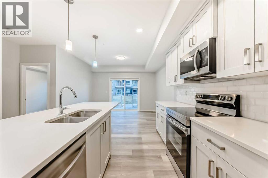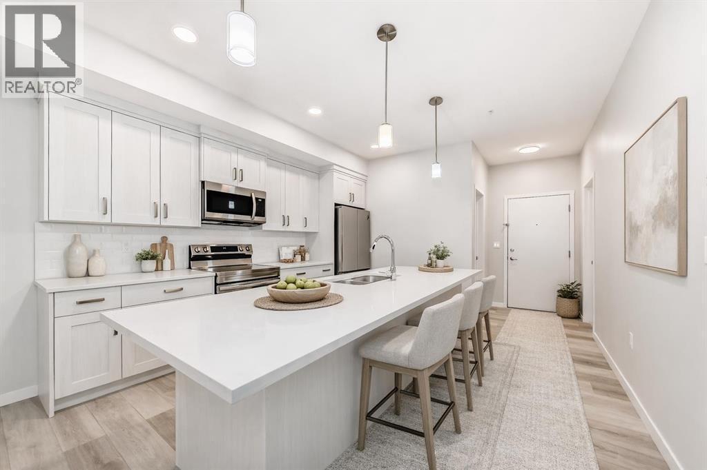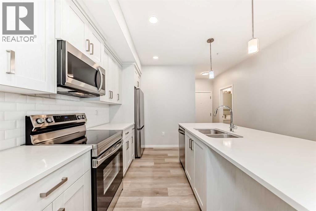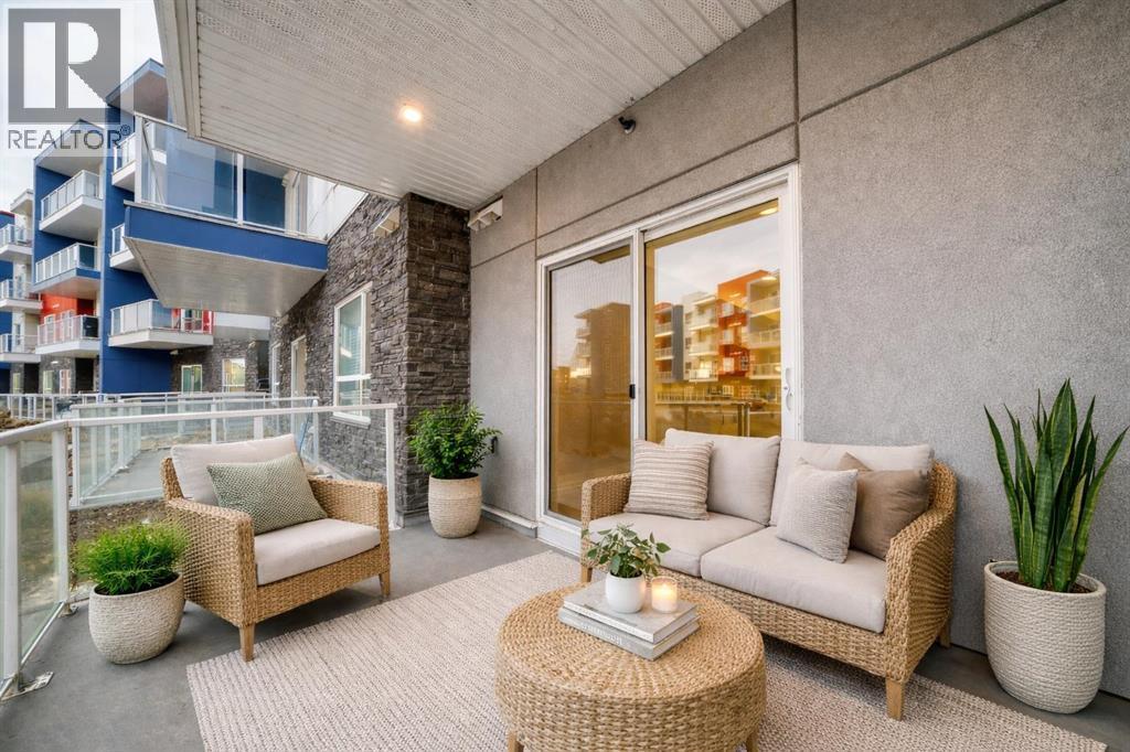 Welcome to Seton Park Place! This MODERN 2 BED, 1 BATH MAIN-FLOOR UNIT is the perfect blend of COMFORT and CONVENIENCE, with LOW CONDO FEES, and located just steps from Calgary's SOUTH HEALTH CAMPUS. Enjoy 639sqft of thoughtfully designed living space with a spacious OPEN-CONCEPT LAYOUT that seamlessly connects the kitchen, living, and dining areas. The contemporary kitchen features STAINLESS STEEL APPLIANCES, QUARTZ COUNTERTOPS, and FULL HEIGHT CABINETRY. The large PRIMARY BEDROOM includes a WALK-IN CLOSET, while the second bedroom is perfect for guests, a home office, or flex space. Step outside onto your EAST-FACING PATIO that opens directly to a BEAUTIFULLY LANDSCAPED COURTYARD, ideal for morning coffee or summer BBQs (GAS LINE INCLUDED). The unit comes complete with TITLED UNDERGROUND PARKING and IN-SUITE LAUNDRY for added convenience. Located in the heart of vibrant SETON, you're minutes from SHC, the YMCA, Superstore, Cineplex, restaurants, cafes, and everything this award-winning community has to offer. Whether you're a FIRST-TIME BUYER, HEALTHCARE WORKER, DOWNSIZER, or INVESTOR, this turnkey unit offers unbeatable VALUE in one of Calgary's fastest-growing neighbourhoods. Book your showing today! (id:6769)
