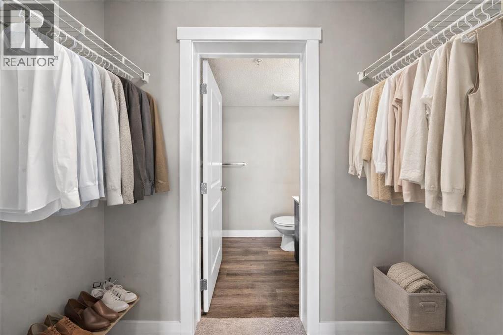 This 2 bedroom, 2 full bathroom unit placed the bedrooms on opposite sides of the home, creating ideal separation for roommates, guests, or work from home flexibility. The east-facing exposure brings in morning light and unobstructed views of the city rooftops & skyline. The kitchen has updated white granite countertops and stainless steel appliances, opening into a comfortable living area. The primary bedroom connects through a walk-through closet to a private 3 piece ensuite. An in unit laundry room includes built-in storage for added functionality. The building is constructed with concrete, providing strong sound insulation between units. Titled heated underground parking is located just a few stalls from the elevator for safety and convenience. Residents also enjoy visitor parking, exterior garbage access, an exclusive east facing rooftop terrace on the 7th floor and Pet friendly. Located minutes (either with Car or by foot) from Walmart, coffee shops, day care, transit, and quick routes to Stoney Trail, Deerfoot Trail, and YYC Airport, this home offers efficient low maintenance living in a well connected NW Calgary community. (id:6769)