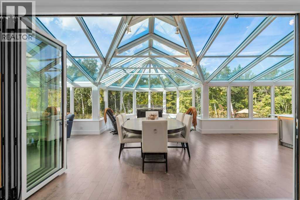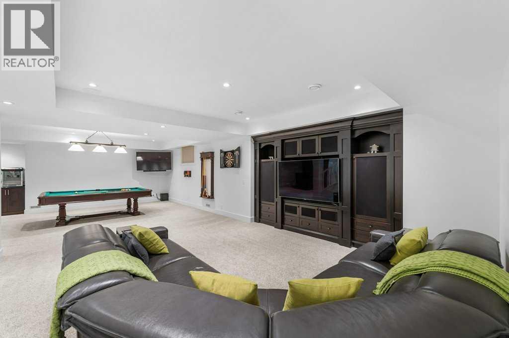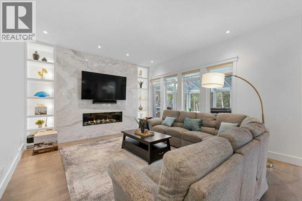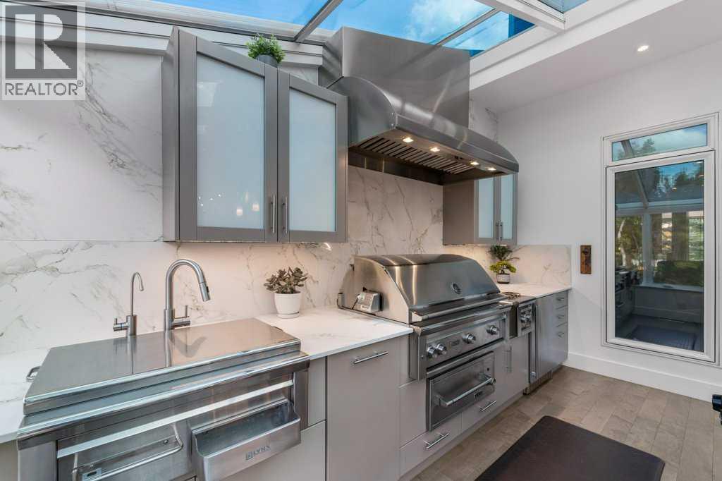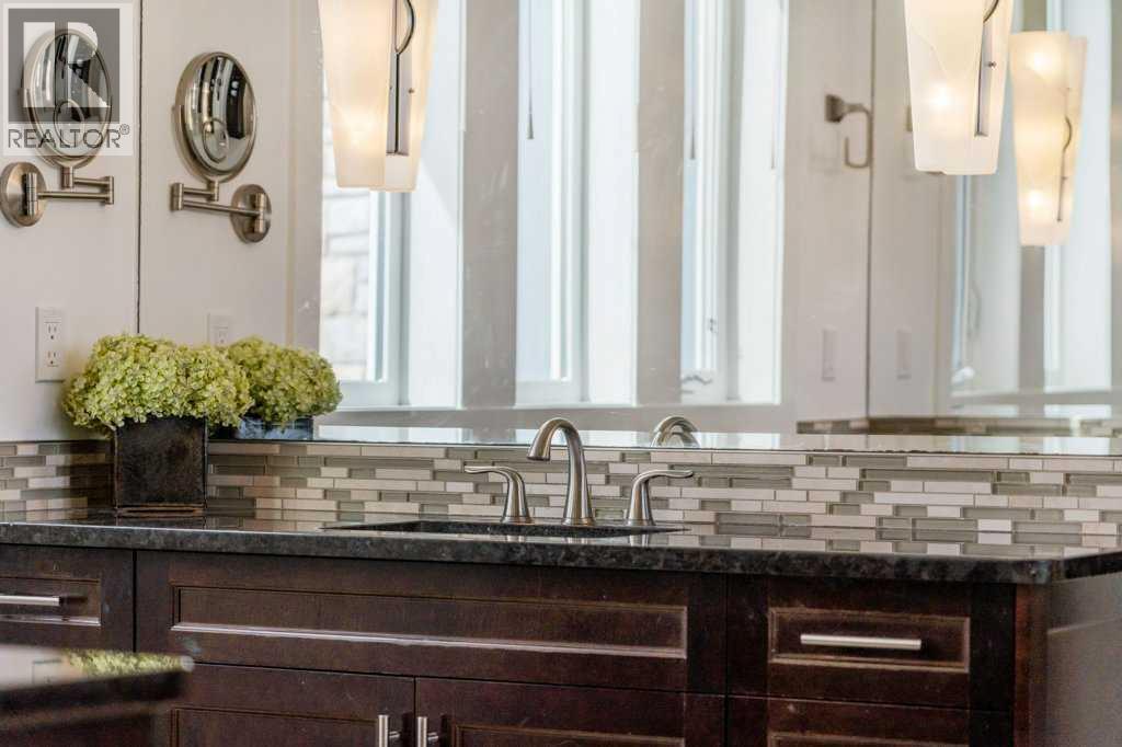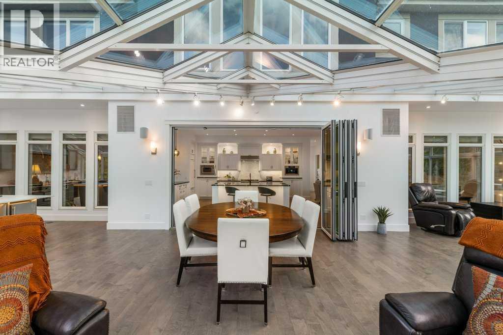 *Welcome to this extraordinary, fully renovated estate home in the prestigious community of Heritage Pointe, offering exclusive lake access and surrounded by natural forest beauty! Situated on a prime lot & backing onto a treed forest, the home has undergone a major renovation. It now features the addition of a spectacular 800 sq. ft. "entertainer's dream" 4 season sunroom (with new foundation and its own furnace/plumbing/air conditioning) - a true showpiece created for both relaxation and entertaining! Outfitted with premium appliances, the chef's kitchen serves large gatherings; a spacious dining room is adjacent, plus a living area for relaxation, where dual large-screen TV's seamlessly rise from the hardwood floors - at the touch of a button! The main home's central kitchen is renovated with new quartz counters/island, new appliances, marble backsplash, plus a newly reconfigured lighted pantry. With a living / dining room that has a new floor-to-ceiling feature "linear" fireplace, perfect ambience is createde. A stylish great room, also adjacent to the kitchen, provides built-in cabinetry with lighted accents. All new hardwood floors adorn the main level, new lighting, all solid interior doors, new carpets. A main floor office, half bath and mudroom complete the main level. The upper level currently features 4 bedrooms (could be bonus room with 3 bedrooms). The master suite showcases vaulted ceilings, a private sitting area overlooking the forest, spa-like 5 pc ensuite w/air jet tub, steam shower & large walk-in closet, heated floors! The professionally finished lower level features a 4th bedroom, bath, media area, games room w/expansive wine bar, fitness room w/cork flooring & 2nd laundry. Direct Connect networking throughout. Dual central air conditioners, gas generator and extensive solar system - serves entire home! The 4 car garages (two double garages) are separated by a breezeway. The rear yard showcases an 8 person "waterfall" mineral h ot tub with an adjacent fire pit gathering area - grounds with underground sprinklers systems. Whether hosting a gathering or hosting a quiet evening, the indoor/outdoor ambience and forested views create a resort-like view year-round! Experience the best of lake living, privacy, and modern sophistication, in one of Alberta's most sought-after communities. (id:6769)