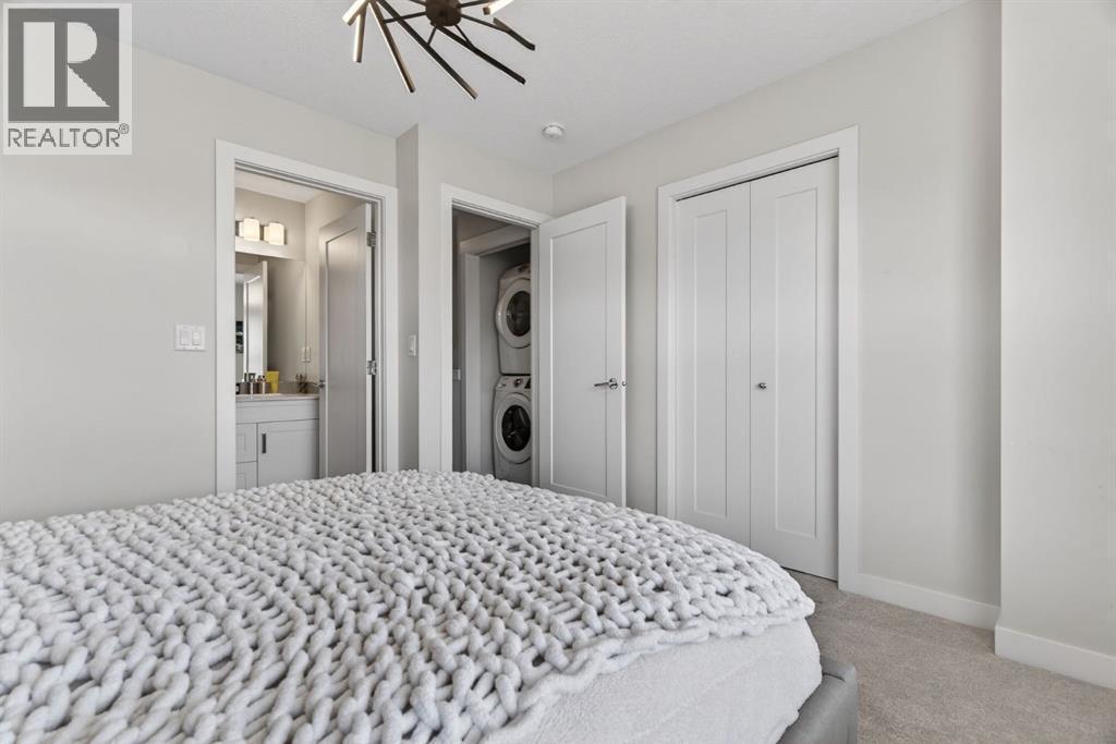 Welcome to this beautifully appointed corner end-unit townhouse in the sought-after community of Nolan Hill, offering 1,427.61 sq ft of thoughtfully designed living space, stunning city views, and exceptional natural light throughout. Perfectly positioned in the heart of the complex, this home enjoys a quieter interior location while still being just minutes from everyday amenities including Costco, T&T Supermarket, shopping, restaurants, and quick access routes in and out of the city. The main level features a bright and open-concept layout with expansive windows that flood the space with natural light. The stylish kitchen showcases white cabinetry, modern hardware, stainless steel appliances, quartz countertops, a sleek tile backsplash, and direct access to the private balcony — the perfect place to enjoy morning coffee while taking in the elevated city views. The kitchen flows seamlessly into the dining area and spacious living room, creating an ideal setup for both everyday living and entertaining. Upstairs, you’ll find three generous bedrooms including a stunning primary retreat with large windows and beautiful views. The additional bedrooms are well-sized and ideal for guests or family. The home also features a tandem double attached garage, offering secure parking for two vehicles plus additional storage — a rare and valuable feature in townhouse living. With its corner positioning, extra windows, quiet interior location, functional layout, and incredible convenience to major amenities, this Nolan Hill townhouse delivers the perfect balance of comfort, style, and accessibility. (id:6769)