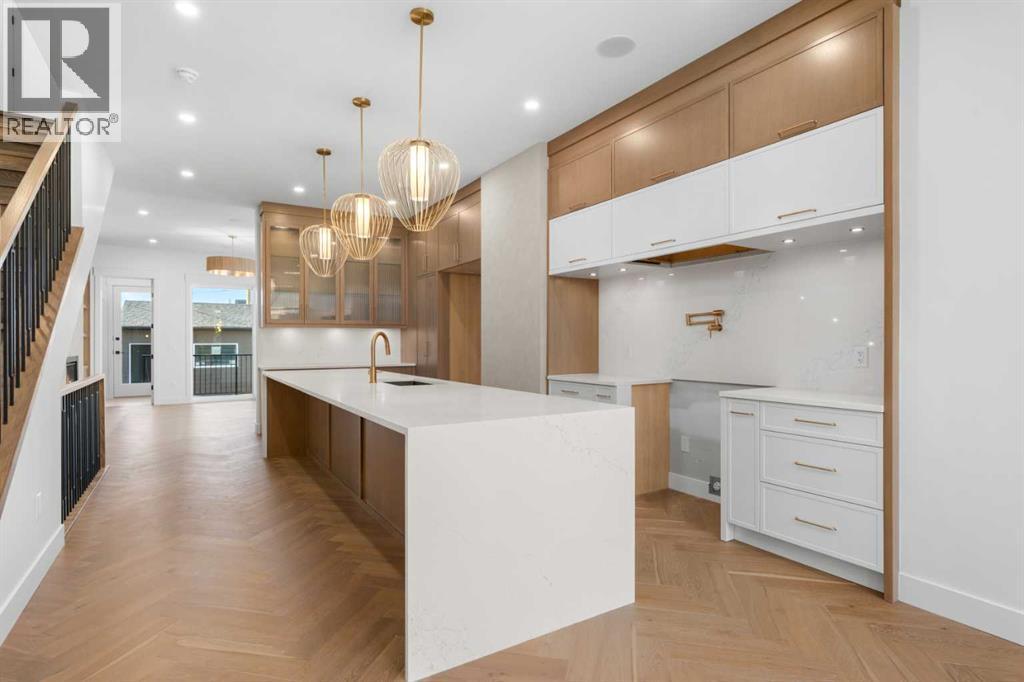 Situated in the desirable community of Altadore, 2004 44 Ave SW is a beautifully crafted detached home offering elevated finishes and a thoughtfully designed floor plan throughout.The main level welcomes you with a spacious dining area that flows seamlessly into the chef-inspired kitchen, anchored by a large central island ideal for both everyday living and entertaining. Custom built-ins provide stylish storage solutions, while the inviting living room is complemented by double patio doors that open onto a generous rear deck, creating effortless indoor-outdoor living. A well-appointed powder room, functional mudroom, charming front porch, and double detached garage complete this exceptional main floor.Upstairs, you will find two well-sized bedrooms, each with walk-in closets, along with a shared three-piece bath and convenient upper-level laundry. The primary suite is bright and airy, featuring large windows, a luxurious four-piece ensuite with double vanity and soaker tub, and an expansive walk-in closet.The fully developed basement adds valuable living space with an additional bedroom, a spacious family and recreation room, a wet bar perfect for entertaining, and a three-piece bath.Please note: Photos reflect a previous home built by the same builder with a similar palette and comparable finishes. This home is currently under construction and final selections may vary.An exceptional opportunity to own a refined, inner-city residence in one of Calgary’s most sought-after neighbourhoods. (id:6769)