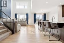 Just imagine living next to the Bow River with amazing views from all 3 floors of your new WALKOUT luxury home in the relaxing Riverstone section of Cranston! This is more than just a place to call home; welcome to a whole new lifestyle! This custom built, original owner Brookfield home was completed in 2023 & has all the luxury upgrades you would ever expect of a home in this unique location! Sitting on a large, fully landscaped, no maintenance lot in the river valley, you can enjoy the peace & tranquility from your covered balcony or covered ground floor patio, while you enjoy a quiet night by the firepit, or practicing up on the PUTTING GREENS in the sunny SOUTH FACING back yard! This 4 bedroom, 3.5 bath, luxury home features over 3300 square feet of developed living space & striking curb appeal with its stone accents, upgraded Hardie Board siding & Celebright (Gemstone style) lighting. The premium Luxury vinyl plank throughout the main floor contrasts well with the rich espresso colored kitchen cabinetry. This gourmet kitchen features an extended island, premium Stainless-Steel appliances, high ceilings, upgraded quartz counters & a walk-through butlers pantry. The main floor also includes a private office / flex space, a half bath, an amazing gas fireplace feature wall, access to the full-width StuXture Louvered Pergola patio system (completely changeable by remote control for rain or sun), soaring ceilings & windows which give amazing River Views from both floors of this home! The designer Artika lighting adds to that luxury feel & elegance you should expect. Upstairs are 3 large bedrooms, including the primary suite featuring a 5-piece spa-inspired ensuite, walk in closet & more amazing views of the river valley! The loft-style flex room also has unparallelled valley views & a full 4-piece bath. An optional Top Floor laundry room / storage closet completes this level. The walkout basement was developed with the same luxurious feel as the rest of the home, wi th 9-foot ceilings, a cozy electric fireplace, family room, secondary optional laundry room, bedroom, a full 4-piece bath, Wet Bar for entertaining, secondary dining area & access to a covered patio. Picture stepping outside to enjoy a fully finished outdoor living space with a beautiful covered balcony, on a large yard, backing right onto nature! Other notable upgrades include a water softener, full drainage & weeping tile to take water away from the home, gas B-B-Que hook ups on 2 levels, ornamental black fence, motorized blinds, Central Air & enough turf and decorative hexagon paving stones to complete this amazing no-maintenance back yard. There is also a fire pit, river access & your own putting greens! Riverstone in Cranston is one of Calgary’s most coveted communities. Tucked away in nature yet just minutes from Seton’s amenities of retail & restaurants, top-rated schools, direct access to the pathways of Fish Creek Park & the South Health Campus. More than just a home, it's a way of life! (id:6769)