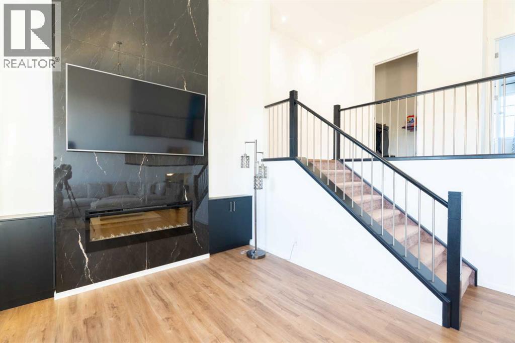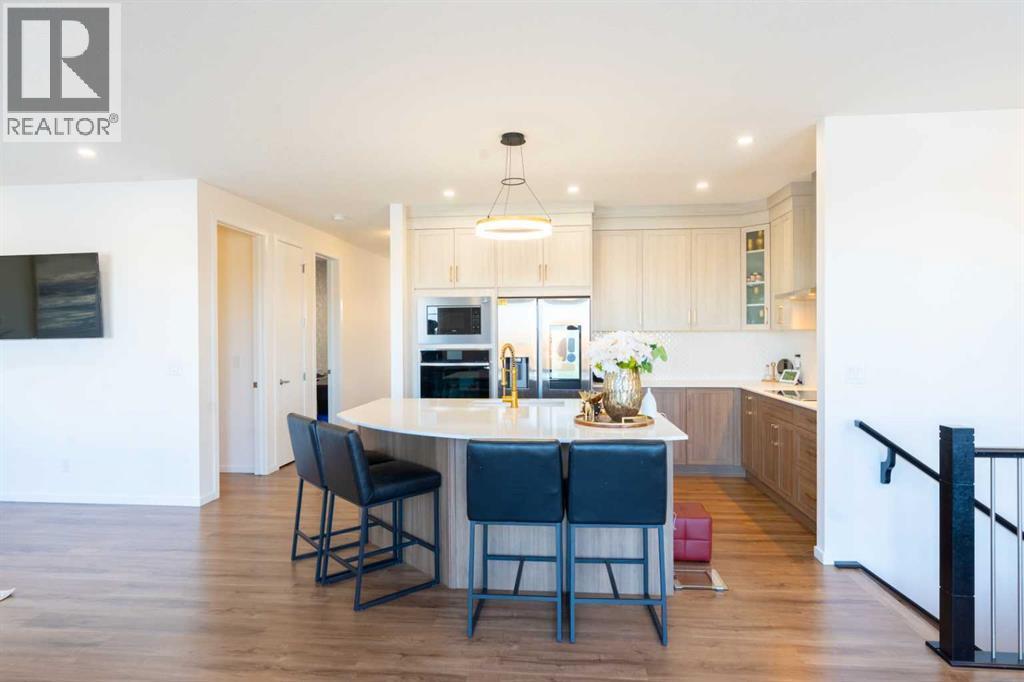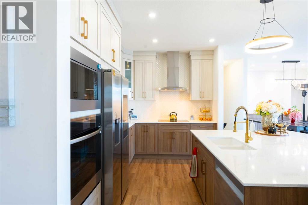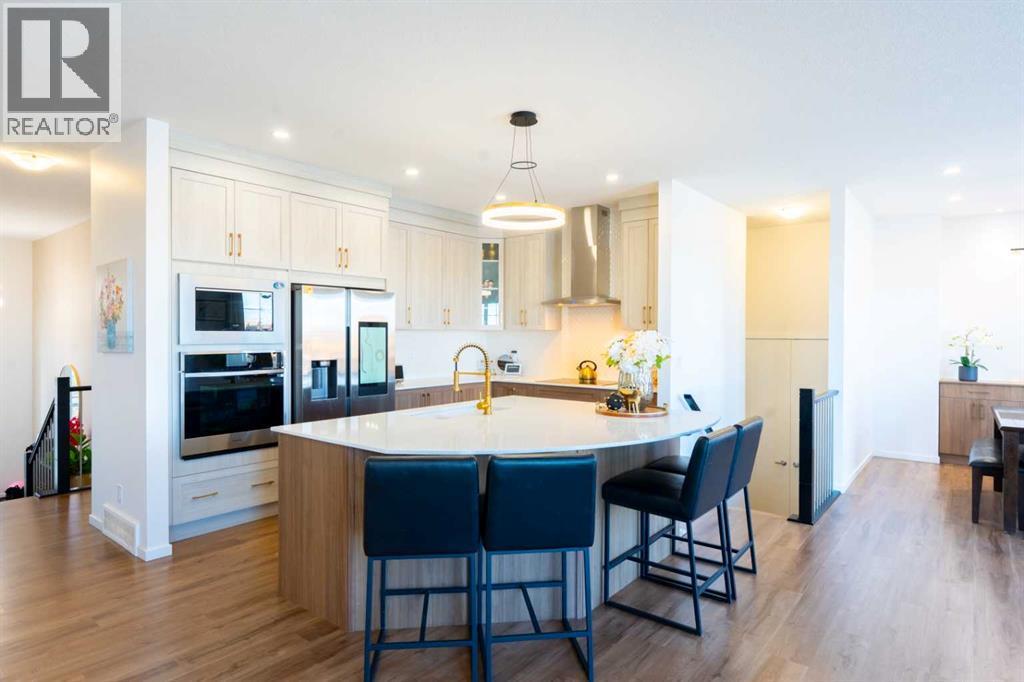 Welcome to 228 Windrow Link SW — perfectly positioned on one of the most desirable premium walkout lots in the community, backing directly onto a serene pond with unobstructed water views and facing a park right out front. With no homes directly in front or behind, this property offers exceptional privacy, abundant natural light, and a truly balanced indoor-outdoor lifestyle in a family-friendly setting.Thoughtfully designed with both everyday functionality and elevated style in mind, the bright open-concept main floor features luxury vinyl plank flooring and expansive windows that flood the home with light from both exposures. The spacious great room offers a loft-inspired feel and is anchored by an upgraded electric fireplace set against a striking modern black panel accent wall — creating a warm yet contemporary focal point.The kitchen is the true showpiece of the home. A custom oversized quartz island with elegant curved edges creates a softer, more organic flow than traditional rectangular islands, making it the perfect gathering space for entertaining, casual dining, or hosting family and friends. The island is finished with matching cabinetry panels for a refined, built-in furniture look and offers generous seating and prep space. The kitchen is further enhanced with full-height cabinetry, sleek built-in appliances, stainless steel finishes, and a clean modern aesthetic. A separate spice kitchen adds exceptional functionality — ideal for keeping the main kitchen immaculate while preparing meals. A dedicated main floor office provides valuable flexibility for remote work or study.Upstairs you’ll find four generously sized bedrooms, including a well-appointed primary retreat complete with a walk-in closet and ensuite bath. The upper layout is designed with comfort and practicality in mind — ideal for growing families or multigenerational living.The walkout basement presents incredible future potential — whether for extended family living, recreation spa ce, or income-generating possibilities (subject to approvals).Step outside to the upgraded glass-railed deck and take in the uninterrupted pond views — a stunning backdrop for summer evenings and morning coffee.A rare opportunity to own a premium walkout lot with water views in one of Airdrie’s most sought-after communities. Location, layout, design, and lifestyle — this home truly stands apart. (id:6769)