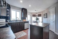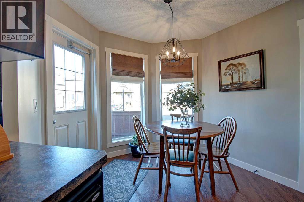 End unit townhouse in Kings Height, Airdrie! This 1,235 sq foot home includes tons of windows for natural light, The spacious living room on the main floor is ready for entertaining, and a beautiful, functional kitchen with a dining nook is ideal for anyone who loves to cook. The natural light continues upstairs in the two generous bedrooms – each with a dedicated ensuite. The larger of the two is currently being used as a bonus room/office. The undeveloped basement houses laundry and plenty of space for storage, as well as future development opportunity. The unit sits on a corner lot and features a private, fenced backyard, two dedicated parking spaces and ample street parking. No need to worry about grass or snow removal, everything is taken care of for you. Located in southwest Airdrie with schools, parks, and shopping at your fingertips, accessing the highway for commuting is also a breeze. Call for more details! (id:6769)