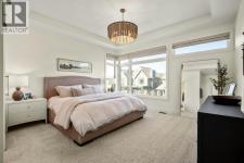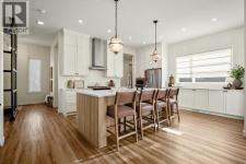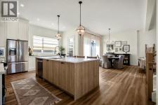 Experience the essence of luxury living in this exquisite home. Situated in the highly desirable community of Alpine Park. As you approach this residence on an oversized corner lot you will notice the great curb appeal, gemstone lights, and welcoming front porch. In like-new condition, this stunning custom-built home offers over 2,600sq. ft, an OVER SIZED TRIPLE CAR HEATED GARAGE, a South-facing fully landscaped yard with irrigation, and extensive upgrades throughout. The sophisticated design boasts soaring 10-foot ceilings on the main-floor. Highlighted by an expansive chef’s kitchen. Complete with ceiling-height shaker-style cabinets, soft-close doors and drawers, high-end upgraded appliances, and gorgeous stone counters. Around the corner is a separate coffee space, large pantry for additional storage, and mudroom leading to your convenient TRIPLE ATTACHED HEATED GARAGE with an additional bay for storage, EV ready rough-in and 220-amp service. There is direct access off the kitchen to your large low maintenance TREX deck and sun-drenched, South facing yard. The kitchen seamlessly transitions to the elegant well sized dining area with a floor to ceiling patio sliders leading to the deck creating a great indoor-outdoor space. Adjacent is the grand living room accentuated by a gas fireplace adorned with a wood mantle and millwork detail. The main level is completed with an office or playroom and a convenient powder room. As you head upstairs notice the airy open riser staircase and elegant railing. This opens to a generous family room creating a versatile space for relaxing, watching movies, or spending quiet evenings together. There are 9-foot ceilings throughout this level, which includes two well sized bedrooms, a 5pc main bath with stone counters, and a convenient upper-level laundry room with sink rough in, all situated away from the Primary retreat. The primary retreat serves as a tranquil sanctuary, boasting a tray ceiling detail, walk-in closet, and luxuri ous ensuite, complete with a freestanding soaking tub including MOUNTAIN VIEWS, a generously sized fully tiled shower, and a private water closet. The unfinished lower level is ready for your creativity with oversized windows, 9’ ceilings, bathroom and bar rough ins. Enjoy the comforts of air conditioning, custom drapes, designer lights, upgraded plumbing fixture, and triple pane windows. Easy access to the mountains, via Stoney trail, downtown 20 minutes away, and 5 minutes to Costco and shopping This estate home is a rare find with no neighbour beside you. Don’t miss this opportunity—schedule your private showing today or explore the virtual tour! (id:6769)
