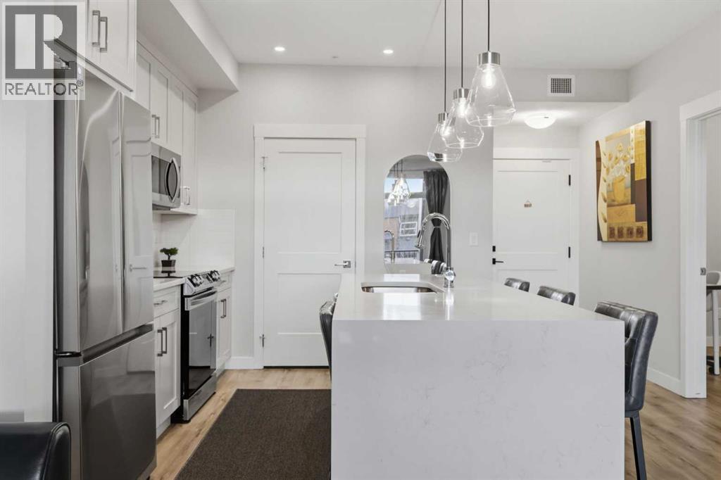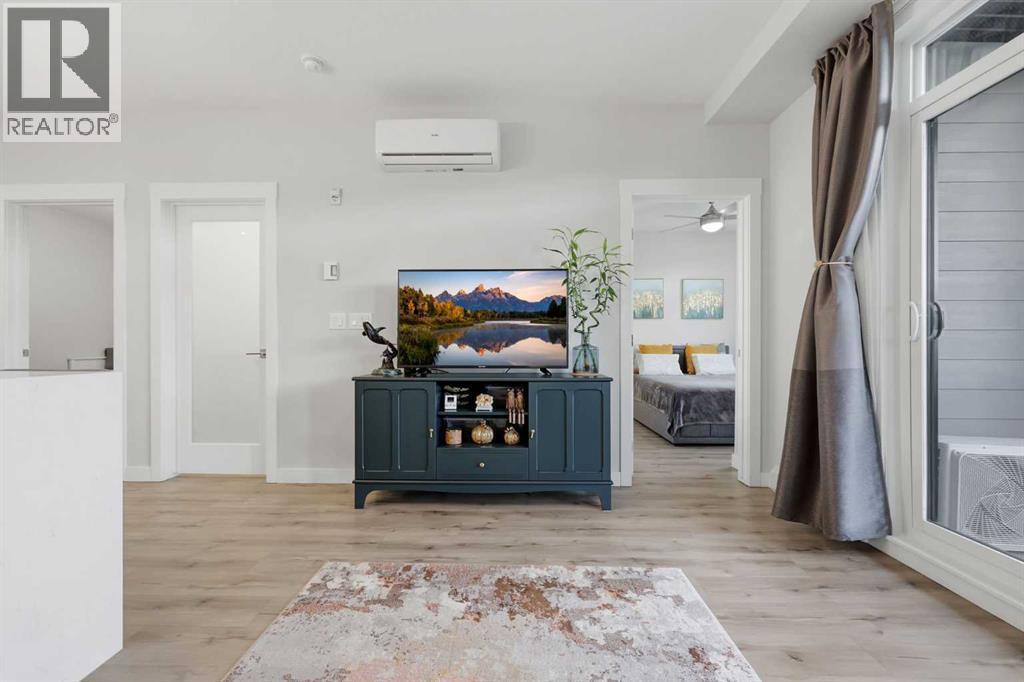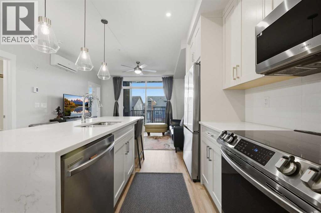 Check out the the 3D Tour of this spotless, and meticulously maintained unit! Welcome to Seton West, where lifestyle, convenience, and long-term value come together in one of Calgary’s most sought-after southeast communities, and all residents gain exclusive access to THE BLOCK, Seton's exclusive community recreation centre. This extensively upgraded 2-bedroom, 2-bathroom condo offers refined, low-maintenance living designed for young professionals, first-time buyers, and savvy investors. From the moment you step inside, the elevated finishings set this unit apart. The kitchen is anything but standard, featuring extended quartz countertops with a waterfall-style eating bar, full-height cabinetry, tile backsplash, and a premium stainless steel appliance package.The open-concept living area is bright and inviting with upgraded lighting, pot lights, dimmer switches, and a ceiling fan for added comfort. Luxury Vinyl Plank flooring flows seamlessly through the main living areas and primary bedroom, offering a modern look with durable performance. Step outside to your private balcony complete with a gas line for BBQing, perfect for summer evenings. This home also includes AIR CONDITIONING for those warm Calgary days.The spacious primary retreat features a private 4-piece ensuite, while the second bedroom offers flexibility for guests, a home office, or a growing family. A second full 4-piece bathroom adds convenience and privacy. Titled underground parking provides year-round comfort and security.Located steps from the vibrant Seton Urban District, the YMCA at Seton, and within walking distance to South Health Campus, this home offers unbeatable access to shopping, dining, recreation, and major roadways including Deerfoot and Stoney Trail. Future Green Line LRT access further enhances long-term value. Move-in ready and beautifully upgraded, this is a rare opportunity to own in a high-demand community. Book your private showing today! (id:6769)
