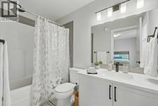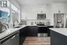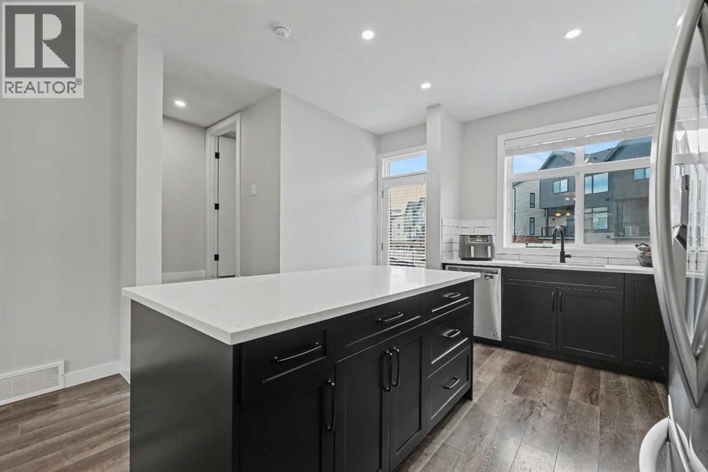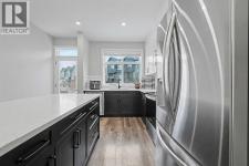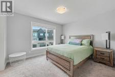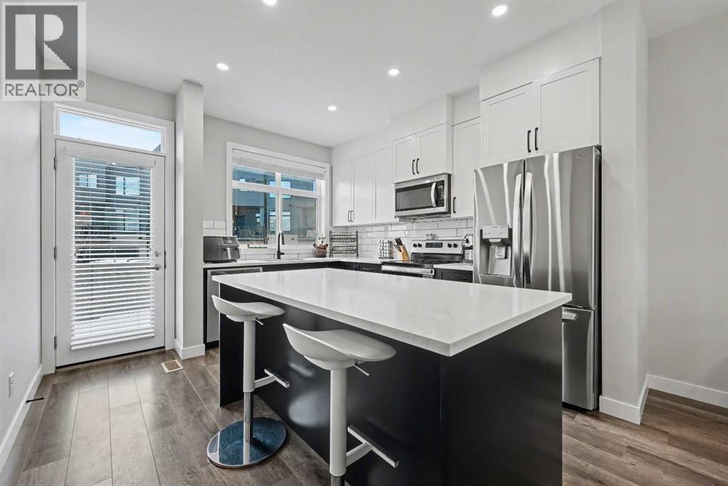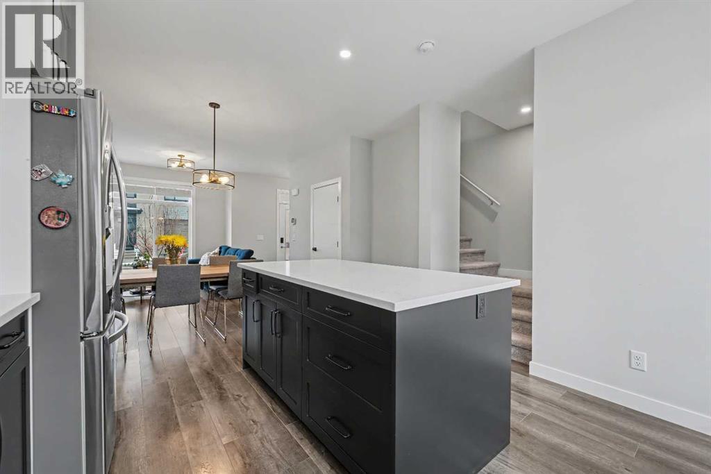 Boasting almost 1,700 sqft of thoughtfully designed living space, this 3 bedroom, 3.5 bathroom townhome offers a bright open layout with contemporary finishes throughout. The main floor features wide plank vinyl flooring, full height kitchen cabinetry with soft close drawers, and a central island with quartz countertops throughout that works beautifully for everyday living and entertaining. From the kitchen, step directly into your private fenced yard, perfect for kids, pets, or relaxing outdoors. Upstairs, the rare dual primary bedroom layout stands out, each with its own walk-in closet and private ensuite. Vaulted ceilings and the convenience of upper-floor laundry complete this well-planned level. The fully developed basement adds even more functionality with a spacious third bedroom, a full 3 piece bathroom, and a cozy family or recreation room. It’s a great option for guests, a home office, or extra living space. Additional highlights include an assigned parking stall and a prime location close to future schools, shopping, medical services, and easy access to Stoney Trail. Outdoor enthusiasts will love the nearby pathways, green spaces, and quick proximity to Nose Creek Park. This beautifully maintained home is a turn-key opportunity for first time buyers, downsizers, or investors. A must-see. (id:6769)