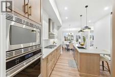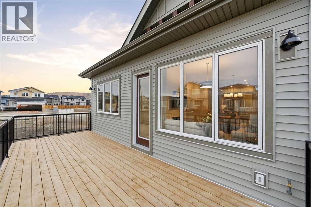 Incredible newly built bungalow by award-winning builder Renova Homes, offering refined craftsmanship, upscale finishes, and the ease of luxury single-level living in the highly sought-after community of Greystone! Backing a walking pathway and just minutes from all shopping amenities, the Spray Lakes Recreation Centre, and the Bow River, this prime central Cochrane location offers the perfect balance of convenience and lifestyle. Designed with discerning buyers in mind, the main floor features 10’ ceilings, oversized 8’ interior doors, sleek black matte finishes, upgraded lighting, and luxury vinyl plank flooring throughout the main floor. The chef-inspired kitchen is both elegant and functional, showcasing a premium KitchenAid built-in appliance package with 36" gas range & 36 " ceiling hood fan, quartz countertops, oversized island, 42” upper cabinetry, extended tile backsplash, and LED under-cabinet lighting—ideal for hosting or enjoying evenings at home. The open-concept dining and living areas are bright and inviting, centered by an electric fireplace and framed by large windows. Step outside to the full-width rear deck, with stairs to grade and a gas line for BBQ—perfect for effortless entertaining. The primary suite is a private retreat, complete with a spacious walk-in closet with built-ins and a spa-inspired ensuite featuring dual sinks, quartz countertops, soaker tub, and a beautifully tiled glass shower with upgraded 12” x 24” tile flooring and shower walls and a tiled shower niche-Thoughtful details include a timer exhaust fan and elegant wood-front medicine cabinet. A second main-floor bedroom or office provides flexibility for guests or working from home, while the well-appointed mudroom includes laundry with rough-in for a sink and space for future cabinetry, plus a convenient pass-through pantry with wood shelving. The fully developed basement expands your living space without compromise, offering a large recreation area with wet bar rough-in and de dicated electrical circuits, two additional bedrooms, and a full bathroom—ideal for visiting family or extended stays. Enhanced garage space with a 2’ extension and upgraded pre-finished door with windows and opener. Homes of this caliber and location don’t come along often! Notable upgrades include: central air conditioning, Roxul sound insulation between the living room and primary bedroom, powder room vanity with quartz countertops, upgraded light fixtures and high-end ceiling fans in all four bedrooms with added structural support, additional basement windows and enlarged office window, comfort-height toilets, HDMI conduit in the primary bedroom, living room & basement, eave plug with interior switch for seasonal lighting, and conduit for future fireplace media. Enjoy the benefits of new construction without the delay—move-in ready and fully protected under Alberta New Home Warranty. Experience elevated bungalow living in the heart of Cochrane—book your private showing today! (id:6769)