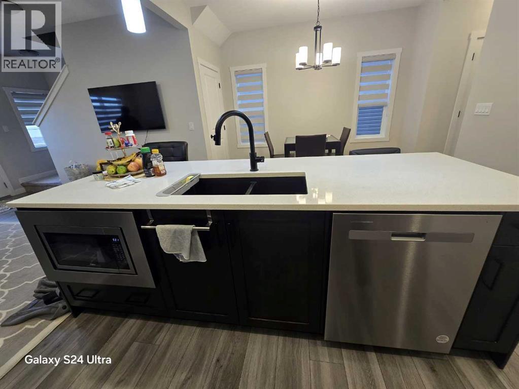 Welcome to this well-maintained, newer home located in the desirable community of Bayview, Airdrie. This beautiful 3-bedroom, 2.5-bathroom duplex features a front-attached garage, a bright open-concept layout, and a huge backyard—perfect for summer activities and family enjoyment.The main floor offers a spacious living room filled with natural light, an open kitchen with quartz countertops, modern cabinetry, stainless steel appliances, and a convenient 2-piece bathroom. Upstairs, the primary bedroom includes a private ensuite with a standing shower, while two additional good-sized bedrooms share a full bathroom. A central bonus area provides flexible space for a home office, kids’ play area, or reading nook.The unfinished basement offers excellent potential for future development, allowing you to design and build your ideal space. Conveniently located close to parks, walking and biking paths, playgrounds, schools, and shopping, this home combines comfort, functionality, and a great community lifestyle. (id:6769)