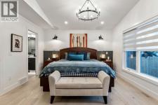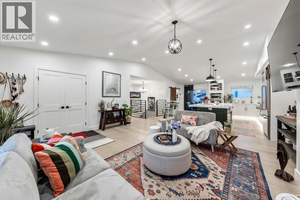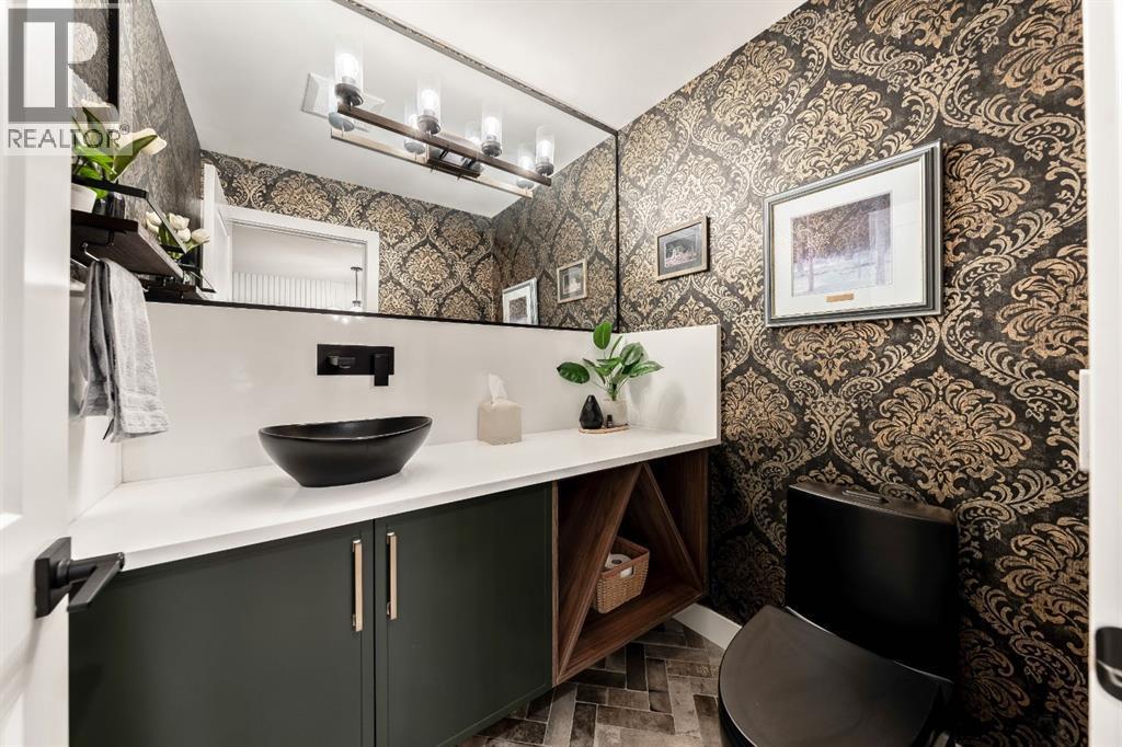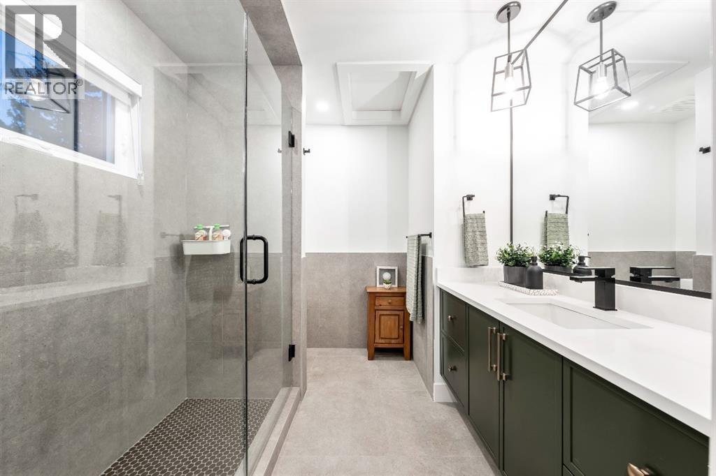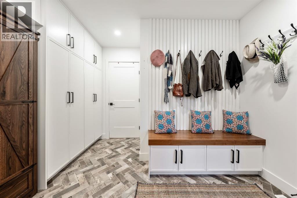 Welcome to this exceptional, fully renovated bungalow in the highly sought-after community of Wildwood—an outstanding opportunity for buyers looking for a truly move-in-ready home with timeless style and modern comfort. This property showcases a refined blend of contemporary finishes and classic architectural details, creating warmth and character rarely found in newer construction. Mature willow trees and professionally designed landscaping frame the approach, while new springline windows and premium Hardie board siding enhance the home’s striking exterior as you step through the charming brick archway onto the inviting front porch.Inside, the home has been thoughtfully reimagined with both front and rear additions, resulting in an expansive and functional layout. Vaulted ceilings, upgraded lighting, and beautiful white oak flooring highlight the bright, open-concept main level. Elegant arched windows flood the living space with natural light, drawing attention to the cozy gas fireplace that anchors the room. The kitchen is a true centrepiece, featuring a substantial quartz island, farmhouse sink, designer pendant lighting, custom hood fan, and a full KitchenAid stainless steel appliance package. Crisp white cabinetry and backsplash selections create a clean, sophisticated aesthetic ideal for both everyday living and entertaining. The adjoining dining area opens seamlessly to the rear deck through sliding glass doors, offering effortless indoor-outdoor flow. A sliding barn door reveals a beautifully designed mudroom complete with herringbone tile flooring, custom built-ins, a feature shiplap wall with bench and hooks, and floor-to-ceiling cabinetry surrounding the rough-in for a washer & dryer.Down the hall, the spacious primary suite offers a peaceful retreat with vaulted ceilings, a feature accent wall, and a custom walk-in closet with extensive built-ins. The spa-inspired ensuite includes dual sinks, a freestanding soaker tub, a rainfall shower with bench, hea ted floors, and floating vanities—luxurious details that elevate everyday living. The second primary bedroom also features its own walk-in closet and private ensuite, making it ideal for guests or multigenerational living, while the stylish powder room completes the main level.Fully developed basement offers a comfortable lounge atmosphere with plush carpeting, a recreation area with wet bar, two additional bedrooms with walk-in closets, a fourth bathroom, and an additional well-appointed laundry space. Extensive upgrades include new subfloors, trusses, furnace, air conditioning, plumbing, electrical, and more—providing peace of mind for years to come. A double detached garage is located off the rear alley, and utilities have been relocated underground for added functionality and curb appeal.Situated near parks, schools, and the many amenities along Bow Trail—with downtown Calgary just minutes away—this beautifully renovated bungalow offers the perfect balance of location, lifestyle, and luxury. (id:6769)