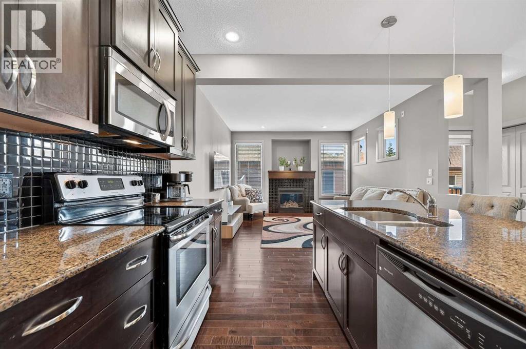 JEWEL BOX OF A DEAL | CHAPARRAL VALLEY | NATURE & LUXURY COMBINEDWelcome to a truly exceptional home where lifestyle meets location in the heart of Chaparral Valley—just steps from Fish Creek Park, the Bow River pathways, Blue Devil Golf Course, ponds, playgrounds, and an abundance of green space. This custom-crafted home offers over 1,629 sq ft of beautifully designed living space, 3 bedrooms plus a main-floor den, 2.5 bathrooms, and stunning views that create a peaceful retreat in an urban setting.The thoughtfully designed open-concept main level is ideal for modern family living and effortless entertaining. Soaring 9’ ceilings on both the primary enhance the spacious feel, while extra windows flood the interior with natural light. The chef-inspired kitchen is the heart of the home, featuring rich dark-stained shaker cabinets extended almost to the ceiling, granite countertops, a large central island with an eating bar, a wall pantry, a full-height tile backsplash, and upgraded stainless steel appliances.Overlooking the dining area and cozy great room with a gas fireplace, the main floor also includes a private front-facing den—perfect for a home office, reading room, or play area.Upstairs, you'll find a spacious primary suite with a private ensuite including a separate tiled shower, long vanities, and a supersized walk-in closet. Two additional bedrooms, an upper-floor laundry room, and a second full bathroom complete this well-planned level.Step outside to your backyard oasis, a sunny and private west-facing yard with a detached garage, low-maintenance landscaping, a raised BBQ deck, and a lower patio - all perfect for relaxing, entertaining, or family fun. Curb appeal is top-notch, featuring wood column accents, stone detailing, upper front verandah and a covered front porch that warmly welcomes guests.Additional upgrades include:Hardwood floorsModern lighting and plumbing fixturesGranite countertops Custom baseboards, doors, and trimUnspoiled b asement with great development potentialLocated near schools, shopping, restaurants, public transit, and the South Health Campus in Seton, this home is a must-see for families, professionals, or anyone seeking a lifestyle rooted in both nature and convenience.Don’t miss your chance to view this one-of-a-kind property—call your friendly REALTOR® today for a private tour! (id:6769)