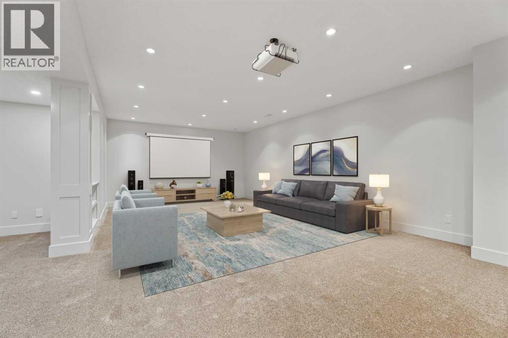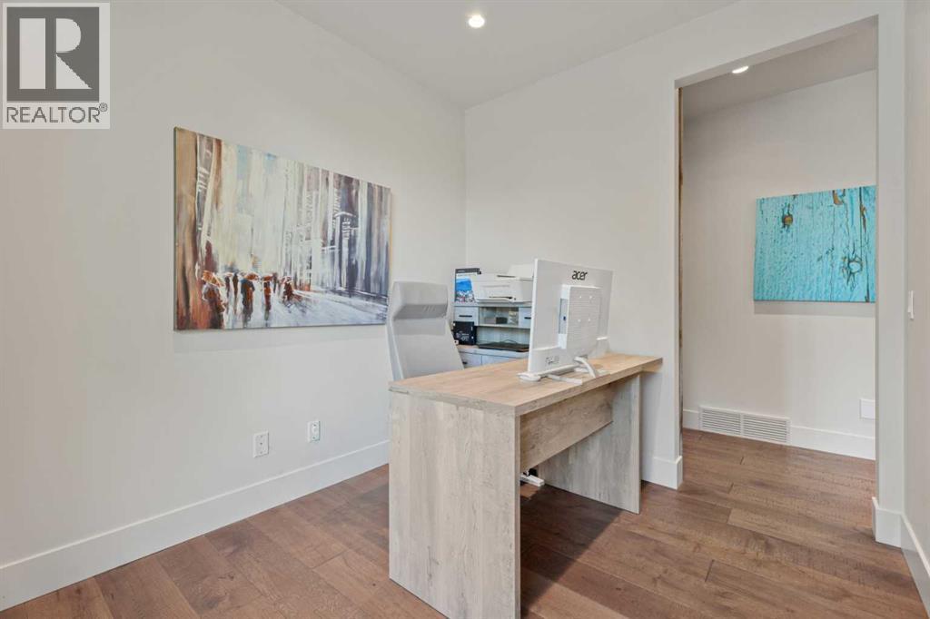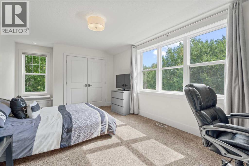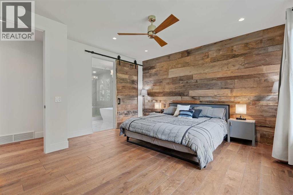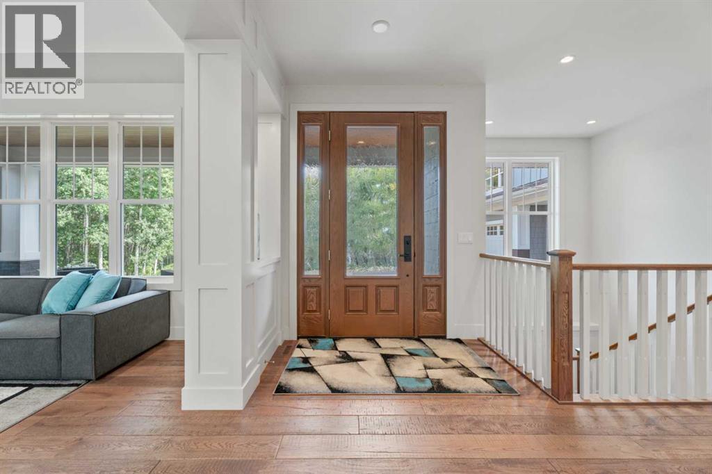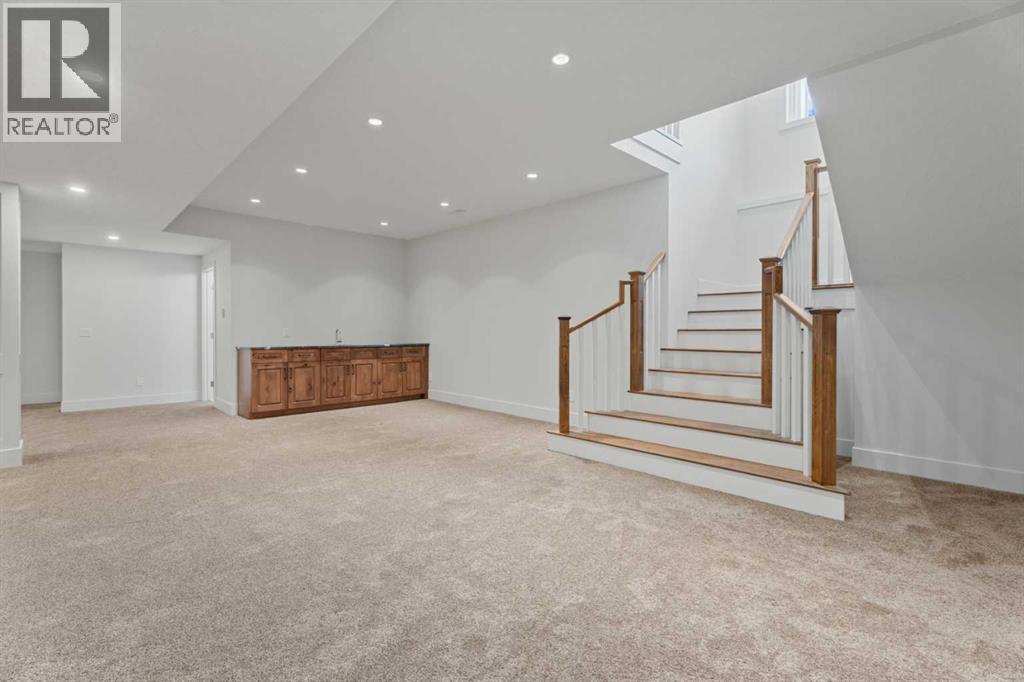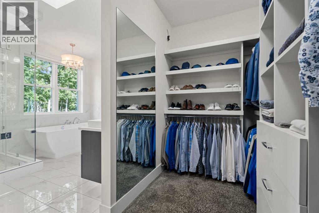 Car enthusiasts!! Set on 5.14 acres of stunning treed and open landscape, just minutes from Calgary and Okotoks, this exceptional custom-built modern farmhouse offers a rare balance of architectural refinement, privacy, and natural beauty. Designed for those who appreciate craftsmanship and quiet luxury, the home presents as a private estate—serene, elegant, and timeless. A paved, curved driveway leads to a gated entrance, introducing a picturesque setting of green space and mature trees. Inside, 17-foot vaulted ceilings and expansive windows fill the main living spaces with natural light, creating an immediate sense of openness and calm. The living room is anchored by a refined gas fireplace and custom built-ins, offering a warm and inviting atmosphere for both everyday living and intimate gatherings.At the heart of the home, a chef-inspired kitchen blends beauty and function, featuring premium Miele appliances, a substantial island with hammered stainless vegetable sink, and a concealed walk-in pantry. The adjoining dining area, enhanced by skylights, flows seamlessly onto a wrap-around deck through French doors—perfect for alfresco dining and peaceful moments overlooking the stunning views.The main-floor primary retreat is a sanctuary of comfort, with vaulted ceilings, a barn wood feature wall, and a spa-inspired ensuite complete with in-floor heating, freestanding soaking tub, walk-in glass shower, and a custom-fitted walk-in closet. A dedicated office, laundry room, and mudroom complete the main level with thoughtful functionality. Upstairs, above the garage, is a versatile bonus room with built-in bar and games area provides an inviting space for relaxation or entertaining, while two additional bedrooms with window seats share a beautifully appointed bathroom. The fully developed lower level offers a billiards area, full bar, spacious recreation room, and two more bedrooms—ideal for hosting guests.The HEATED 5-CAR GARAGE has 3 garage doors has dog wash and a work bench. With an RV hook-up, and private walking paths throughout the fully fenced property, this estate delivers elevated acreage living just moments from some of Heritage Pointe, Carmoney and Cottonwood Golf Courses plus city convenience. Contact your favourite realtor today to arrange a private showing. (id:6769)