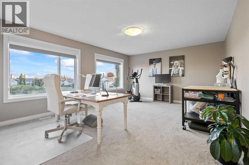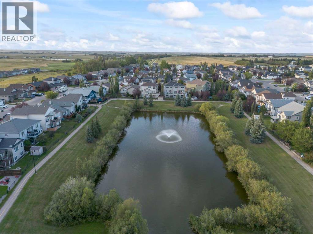 Water views. Walkout basement. Cul-de-sac living.Homes like this do not come up often in Hillview Estates.Set quietly at the end of a cul-de-sac and backing directly onto the pond, this home offers something buyers are always searching for but rarely find together: privacy, views, and space to actually enjoy where you live.Step outside and the lifestyle speaks for itself. A full-width deck overlooks the water, creating the perfect setting for morning coffee, summer evenings, and peaceful sunsets reflecting across the pond. The backyard walkout gives you direct access to outdoor space while still offering the privacy homeowners love about this location.Inside, the home offers just under 2,400 square feet above grade with a layout designed for everyday life. Bright, open living spaces welcome you the moment you walk in, with soaring ceilings that create a sense of space and light throughout the main floor.The kitchen sits at the heart of the home with generous cabinetry, a pantry, and clear sightlines to the main living areas so you stay connected whether hosting guests or spending time with family.Upstairs you will find three spacious bedrooms plus a large bonus room, ideal for movie nights, kids space, or a quiet retreat away from the main floor. The primary suite is oversized and comfortable, complete with a five-piece ensuite featuring a soaker tub and separate shower.The walkout basement adds even more flexibility, offering a fourth bedroom, full bathroom, and a large rec room that opens directly to the backyard. Perfect for guests, teenagers, or multi-generational living.What truly sets this home apart is the setting.Pond views. Cul-de-sac privacy. Walkout living.A combination that rarely becomes available in Strathmore.If you have been waiting for a home with space, views, and a location that simply feels better the moment you arrive, this one is worth seeing.Book your showing and come experience it for yourself. (id:6769)